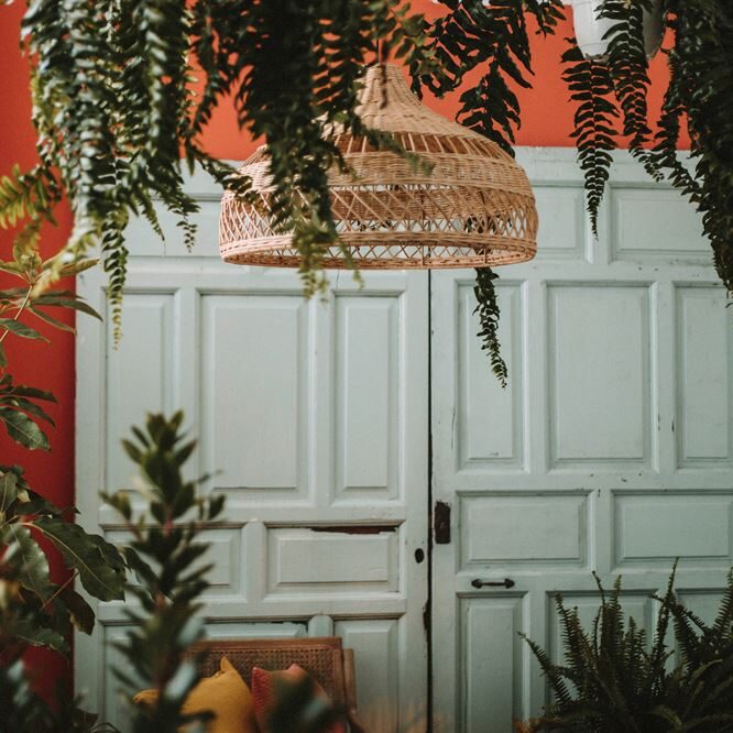 Abat-jour Victoria en rotin naturel pour lampe de plafond de style méditerranéen.