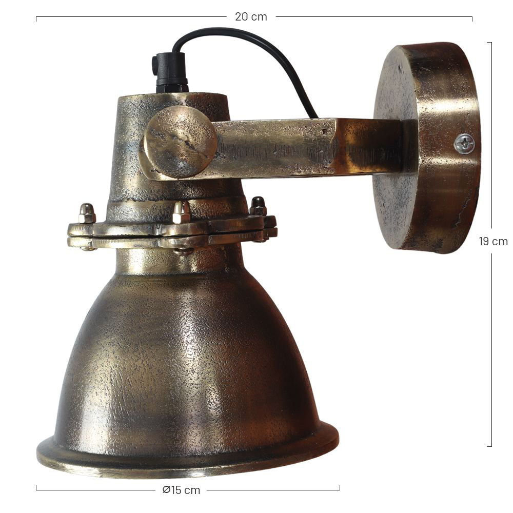 L’applique murale Sangara s’inspire des anciens luminaires industriels. Cette applique est en métal finition bronze vieilli et dispose d’une douille E14.