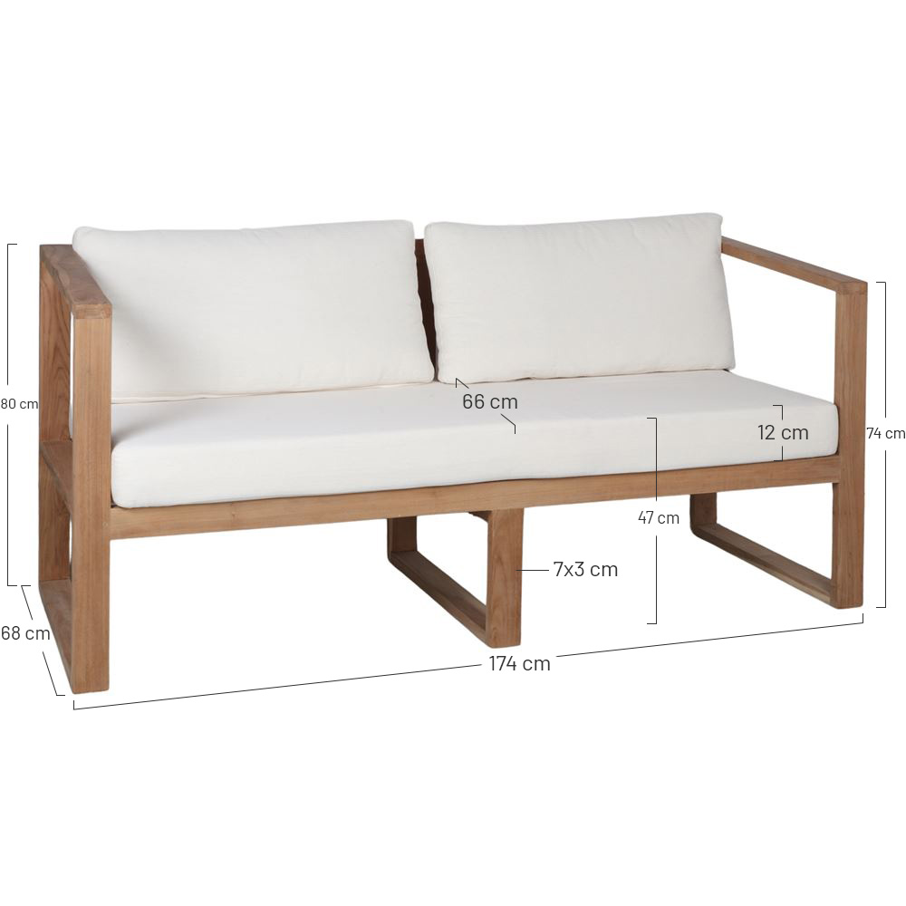 Dimensions : 174x68x80 cm | Hauteur d’assise : 47 cm (dont coussin 12 cm) | Accoudoirs : 74 à 80 cm