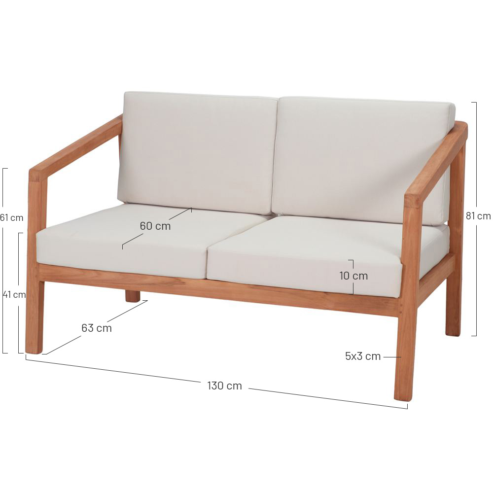 Dimensions :130x83x81 cm | Hauteur d’assise : 41 cm (dont coussin de 10 cm d’épaisseur) | Accoudoirs : 61 à 72 cm