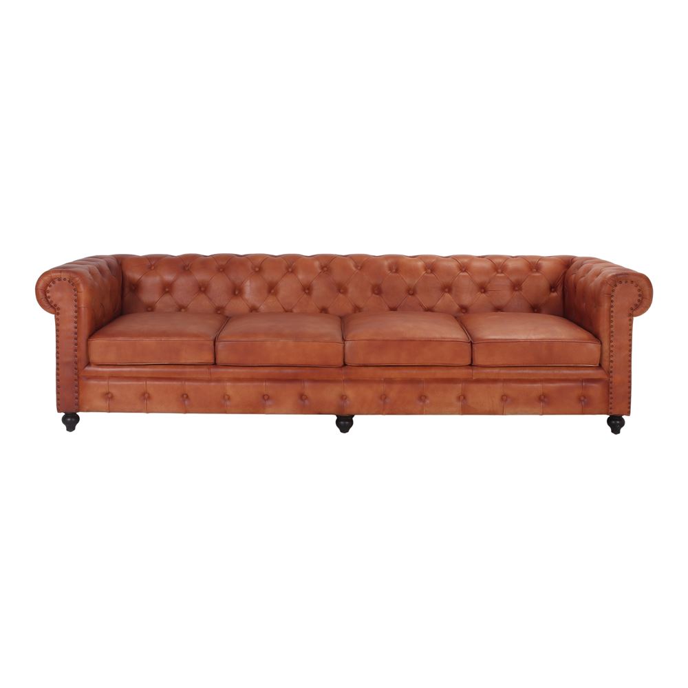 Canapé Chester Garbo 4 places, revêtement capitonné en cuir.