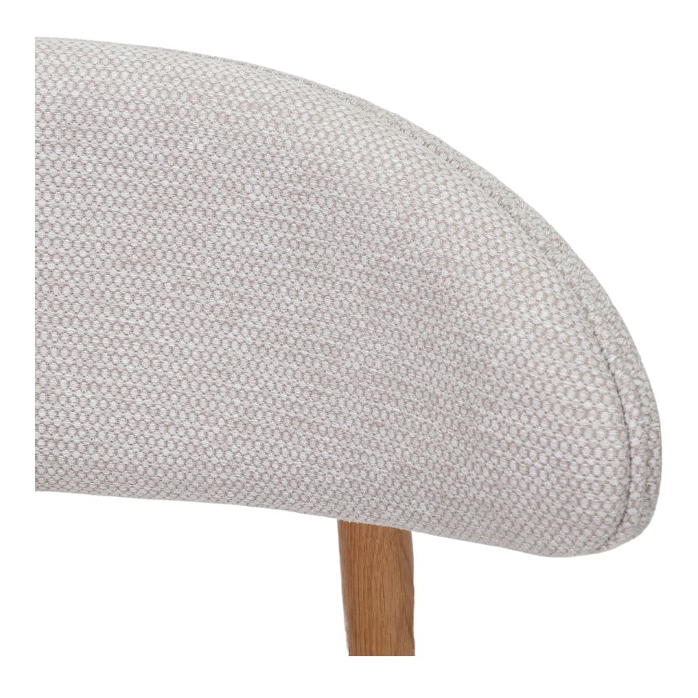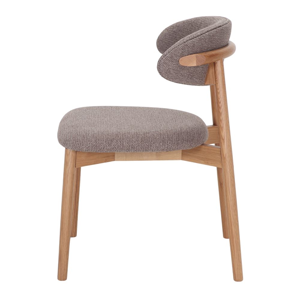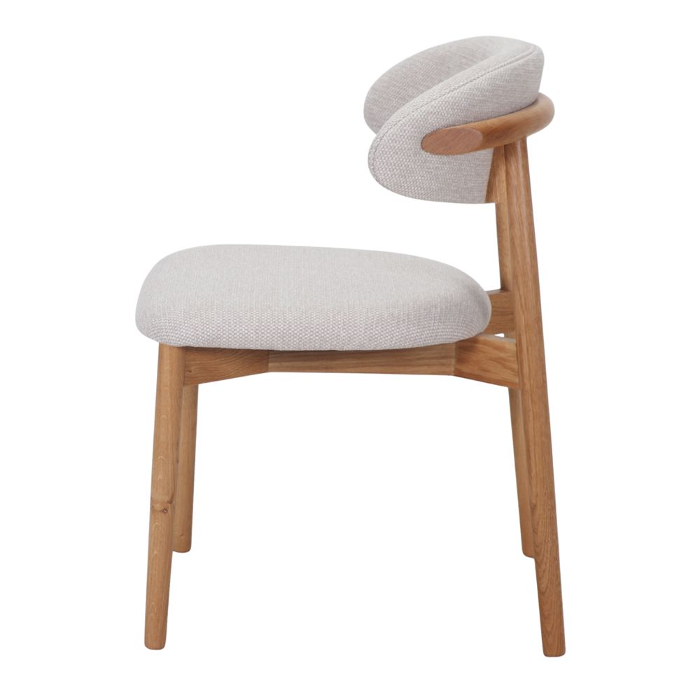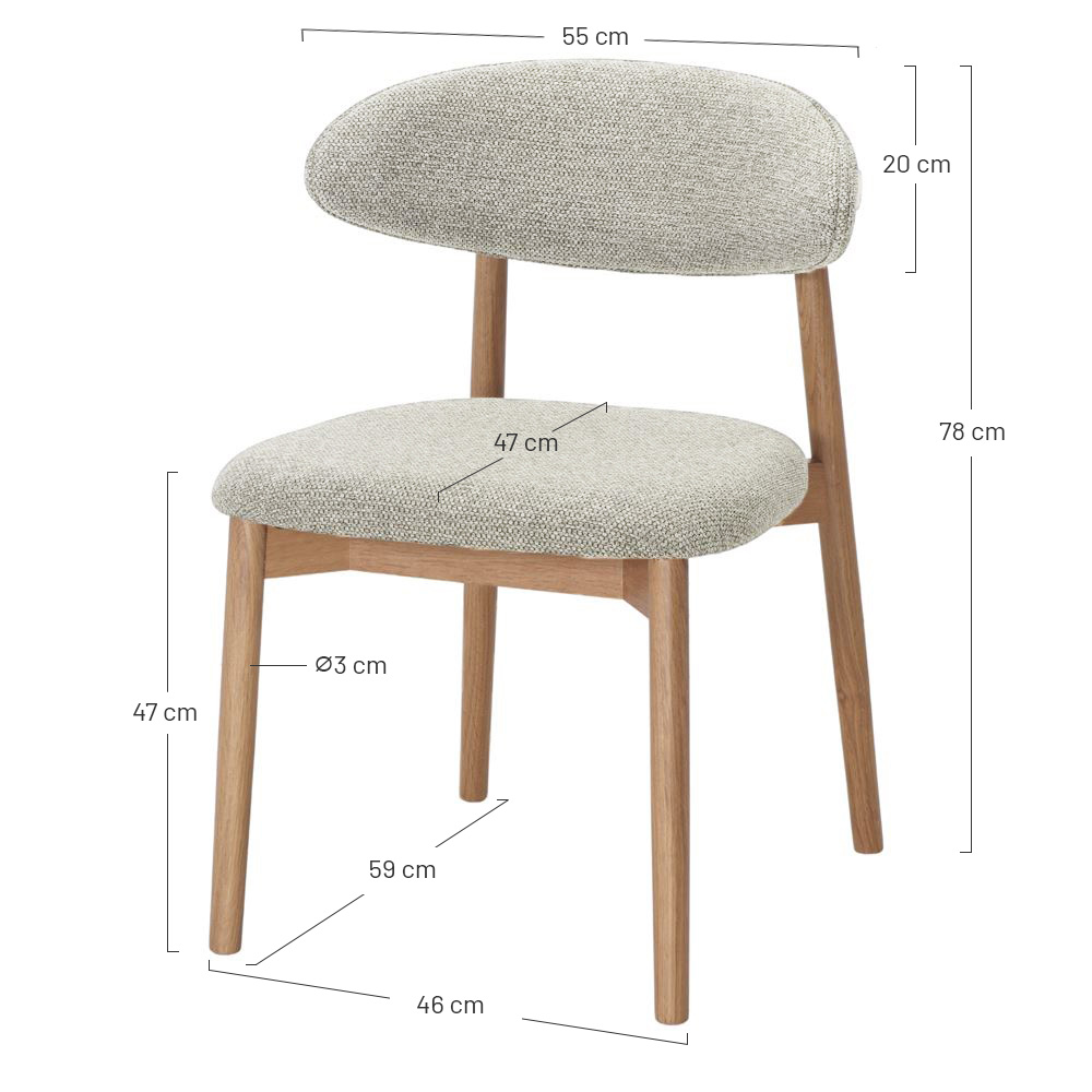 L’assise et le dossier sont délicatement recouverts de tissu, un matériau doux et résistant qui ajoute une touche de confort et d’élégance. La combinaison du bois tourné et du tissu crée un contraste harmonieux qui reflète l’esthétique scandinave et s’intègre facilement dans divers espaces intérieurs.