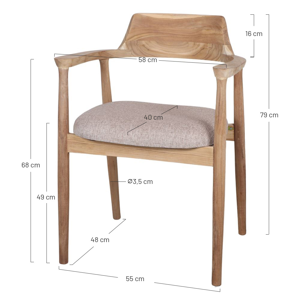 Naturel : 58x49x79 cm | Hauteur d’assise: 49 cm | Accoudoirs: 68 cm