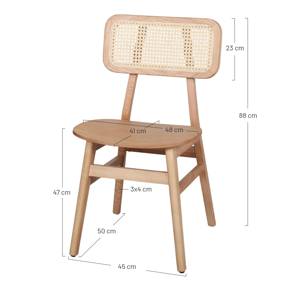 Notre chaise en bois Hobart est l’une des tendances les plus notables de la saison. Fabriquée en bois de frêne, ce bois est idéal pour la fabrication de meubles car il leur confère une extrême solidité. Le dossier façon cannage tressé en rotin naturel lui donne une touche très vintage. Une chaise parfaite pour n’importe quelle pièce ou pour une utilisation dans un restaurant. Elle est actuellement disponible en deux couleurs, noir et chêne.