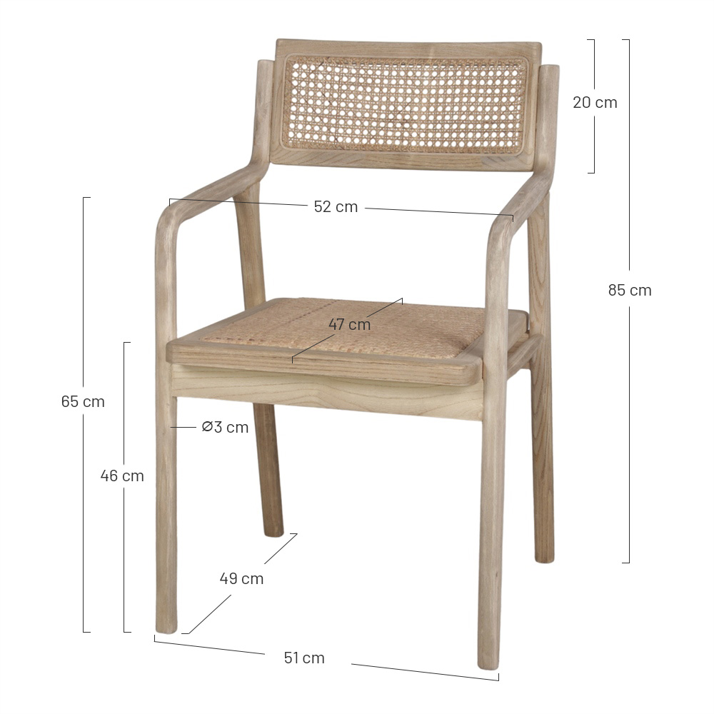 Dimensions: 52x56x85 cm | Hauteur d’assise: 46 cm | Accoudoirs: 65 cm