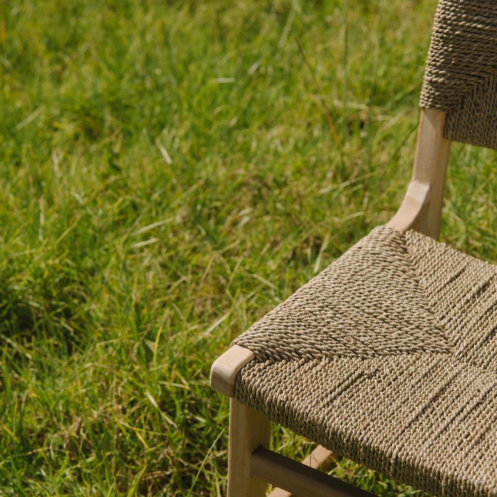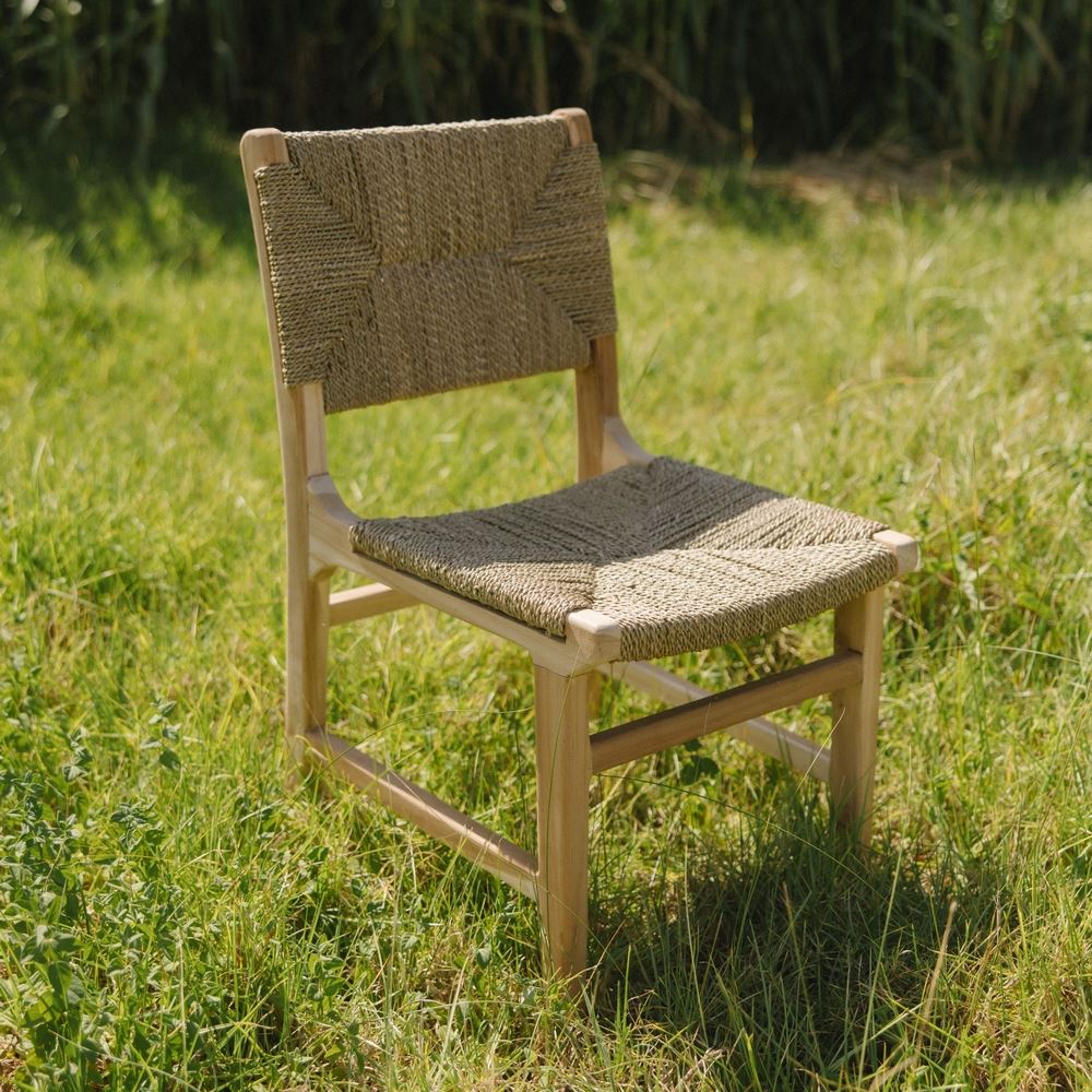 La chaise en bois Juno est une des tendances de cette saison. La fibre marine naturelle accompagne la structure en bois de teck, formant l’assise en la tressant. Une charmante chaise qui ajoutera une touche méditerranéenne à votre espace.