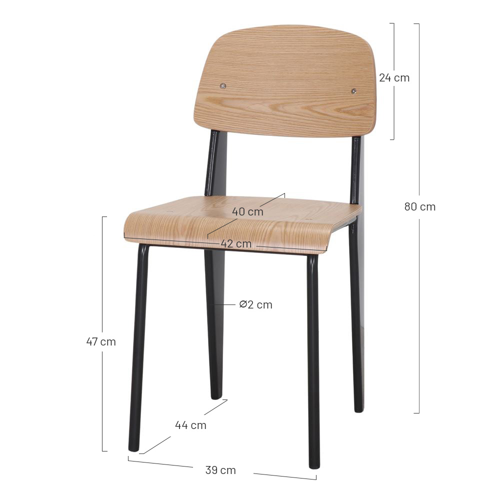Chaise en bois de style moderne en contreplaqué et structure en acier. Ce design de chaise est inspiré de l’emblématique chaise « Standard » conçue par le français Jean Prouvé, un modèle très élégant idéal pour n’importe quelle pièce de votre maison. Elle peut également être utilisée dans un restaurant, et associée à nos tables, pieds de table ou plateaux de style contemporain par exemple.