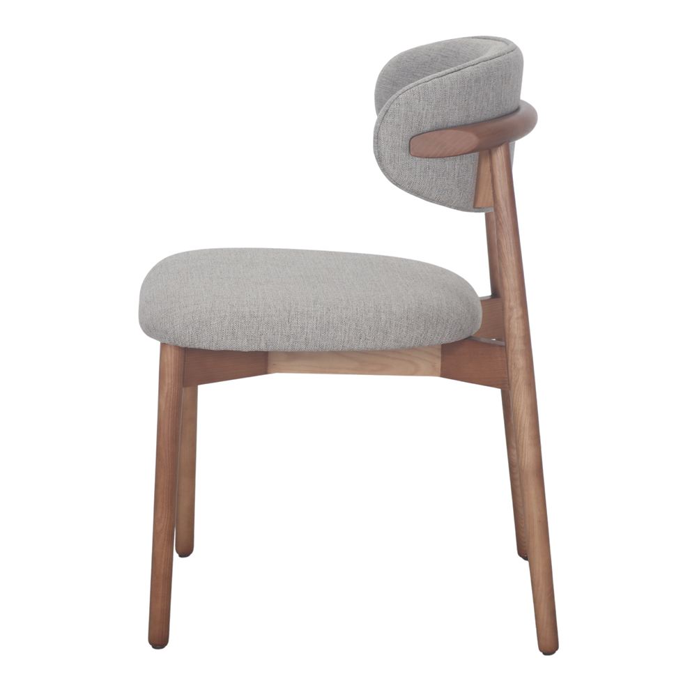 L’assise et le dossier sont recouverts de textile, offrant un confort optimal et une texture agréable. Ce détail améliore non seulement l’expérience utilisateur, mais crée également un contraste visuel intéressant avec la chaleur du bois.