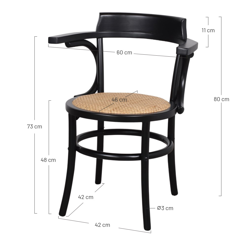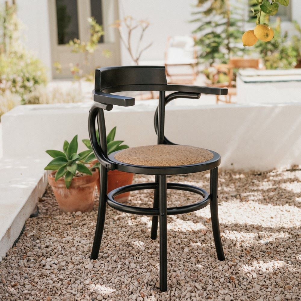 Chaise Pompeya en bois et rotin avec accoudoirs, style Bistro.