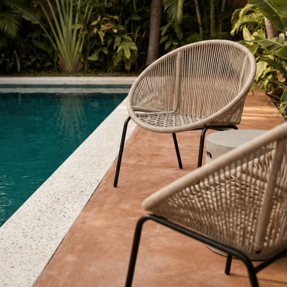 Chaise Caprese en corde et métal, style méditerranéen.