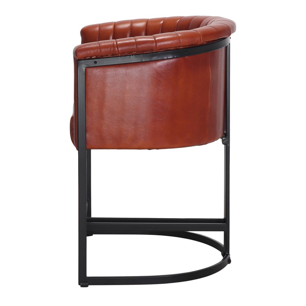 Chaise de style industriel/vintage, structure en tubes d’acier, assise et dossier en cuir de chèvre.
