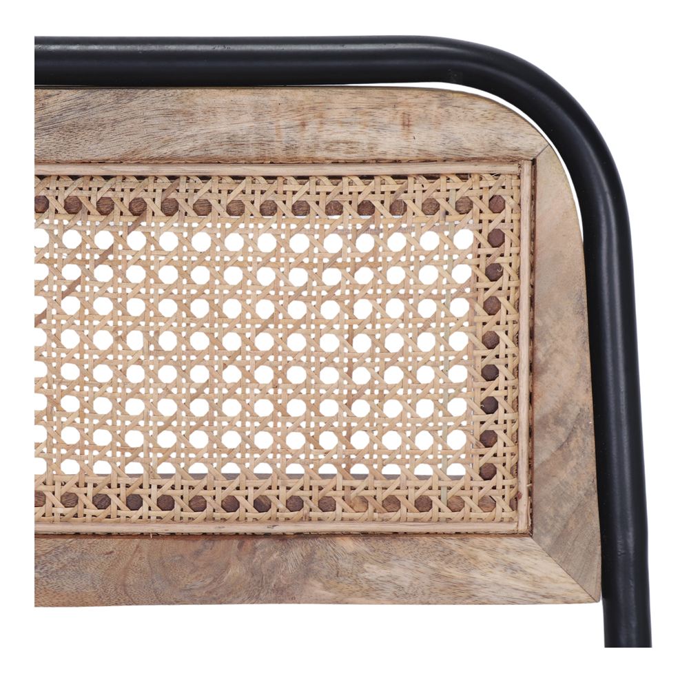 Assise en cuir et dossier en bois massif de manguier naturel et maille de jonc, type cannage.