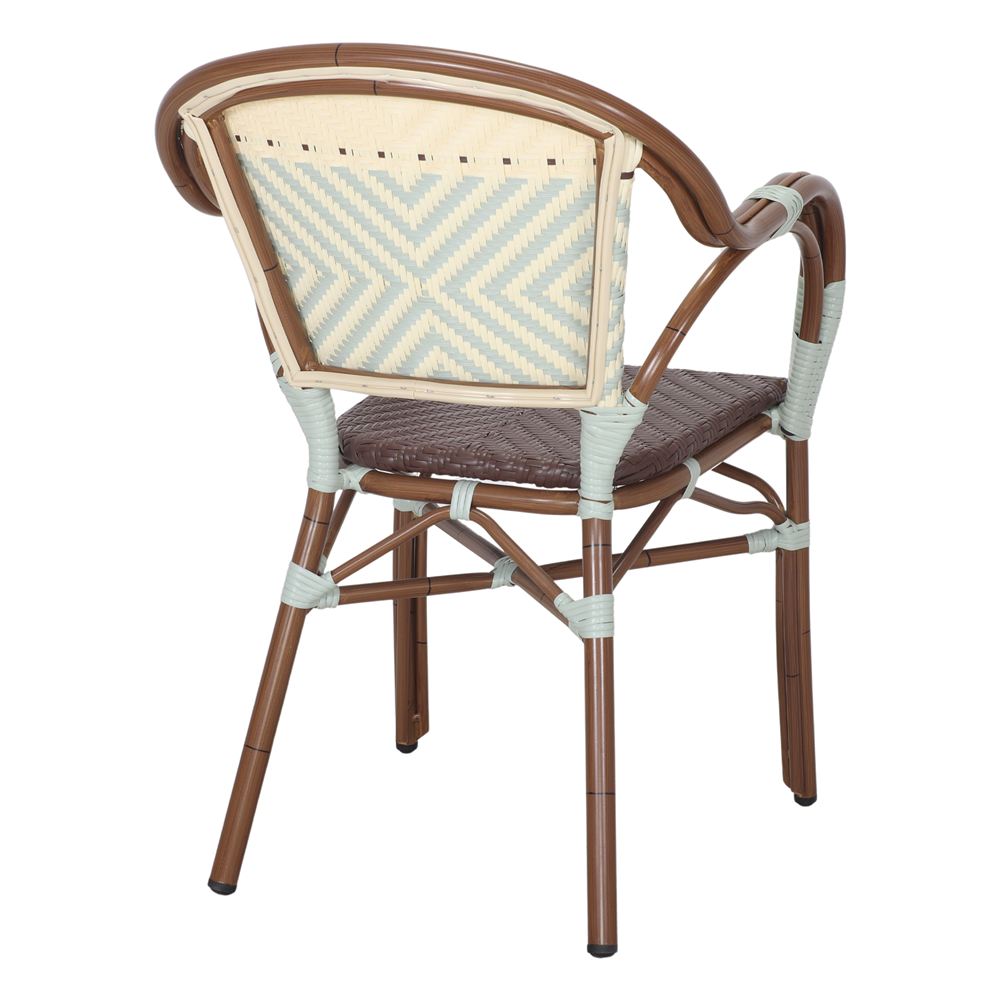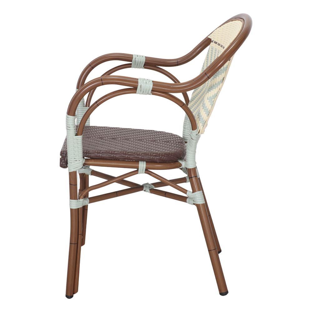 Sa structure tubulaire en aluminium garantit résistance et légèreté, idéale pour un usage fréquent sans compromettre sa durée de vie. La finition imitation bambou apporte une chaleur visuelle et une touche organique qui s’intègre facilement dans tous types d’espaces. L’assise et le dossier sont fabriqués en fibre de rotin synthétique tressé, un matériau conçu pour résister aux conditions climatiques sans se détériorer, tout en conservant son aspect attrayant et son confort au fil du temps.
