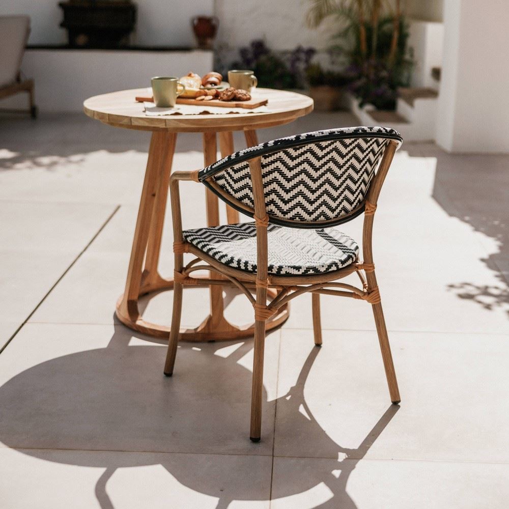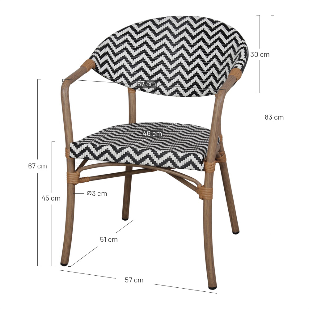 Notre chaise d’extérieur Lungo, de style Bistro, est fabriquée en aluminium avec une finition imitation rotin et fibre synthétique. Le rotin synthétique est sur le point de s’imposer dans tous les décors extérieurs, et ce n’est pas une surprise : son tissage solide ajoute de la texture au look et a été utilisé dans certains des designs les plus emblématiques de l’histoire de la décoration. Dans cette chaise d’extérieur, le rotin synthétique apporte une touche plus contemporaine que le rotin traditionnel et est facile d’entretien. Parfait pour un patio, une terrasse ou un jardin. Associez-la à d’autres meubles de style bistrot pour une combinaison parfaite. Son design unique est la recette d’une pièce originale qui donnera à votre espace une touche très parisienne.