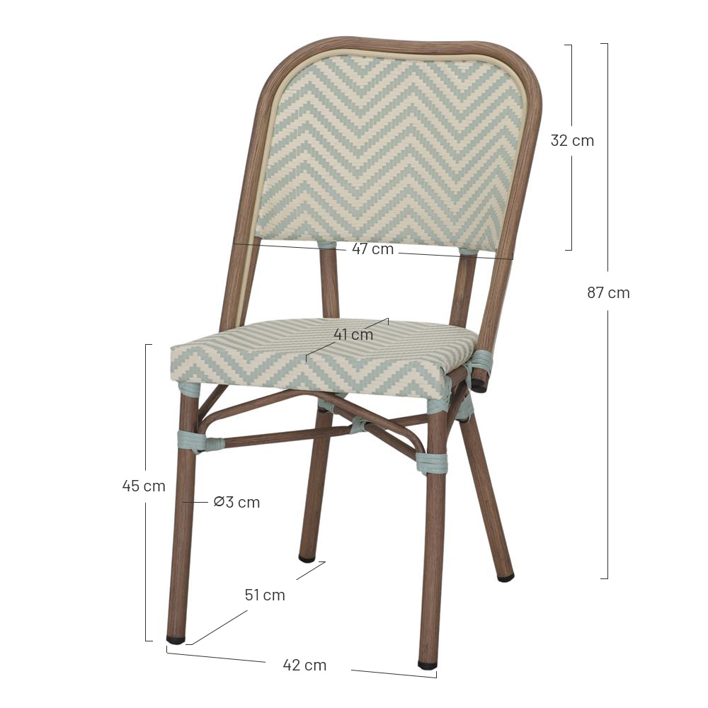 Notre chaise d’extérieur Marianela, de style Bistro, est fabriquée en aluminium avec une finition imitation rotin et fibre synthétique. Le rotin synthétique est sur le point de s’imposer dans tous les décors extérieurs, et ce n’est pas une surprise : son tissage solide ajoute de la texture au look et a été utilisé dans certains des designs les plus emblématiques de l’histoire de la décoration. Dans cette chaise d’extérieur, le rotin synthétique apporte une touche plus contemporaine que le rotin traditionnel et est facile d’entretien. Parfait pour un patio, une terrasse ou un jardin. Associez-la à d’autres meubles de style bistrot pour une combinaison parfaite. Son design unique est la recette d’une pièce originale qui donnera à votre espace une touche très parisienne.