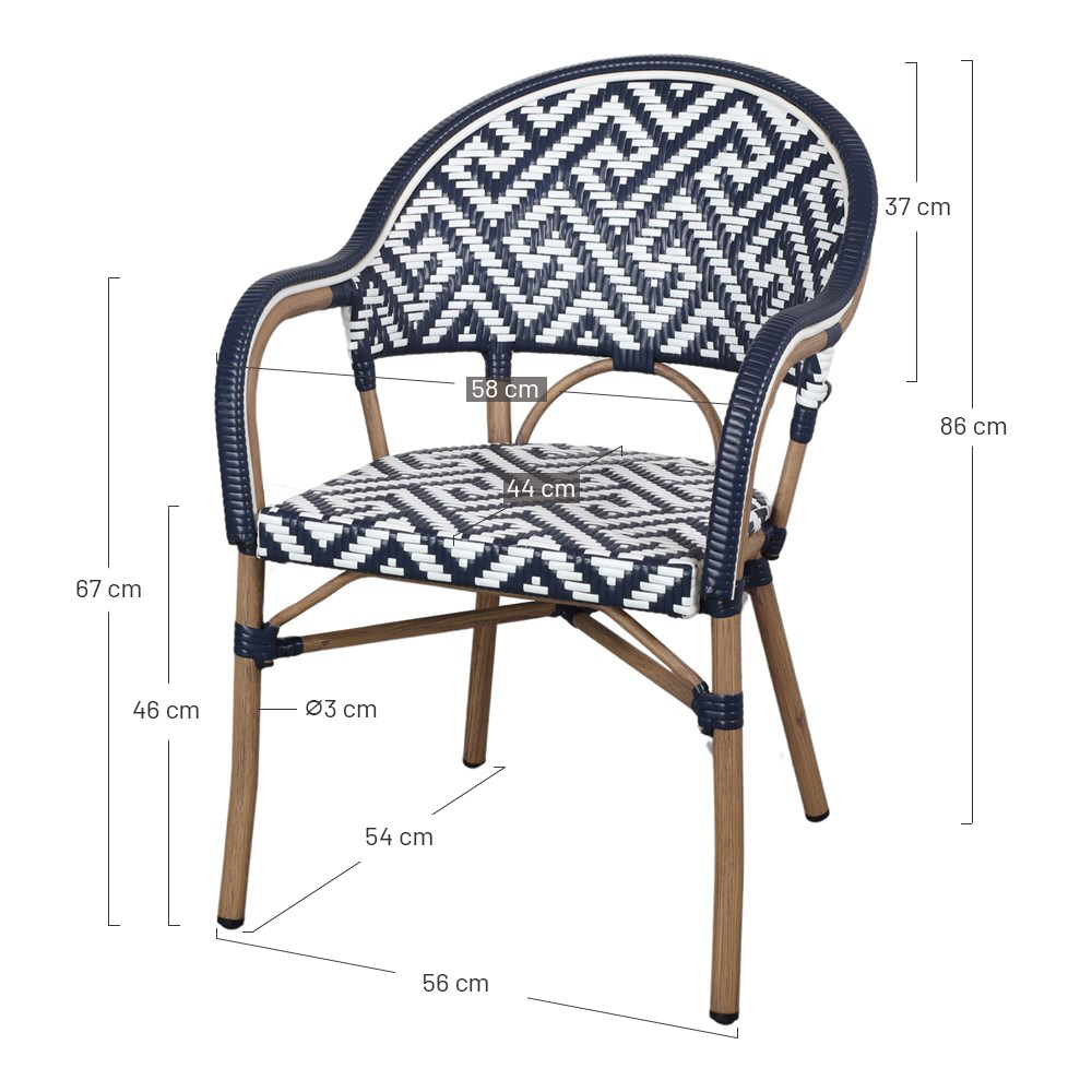Dimensions : 58x62x86 cm | Hauteur d’assise : 46 cm | Accoudoirs : 67 cm
