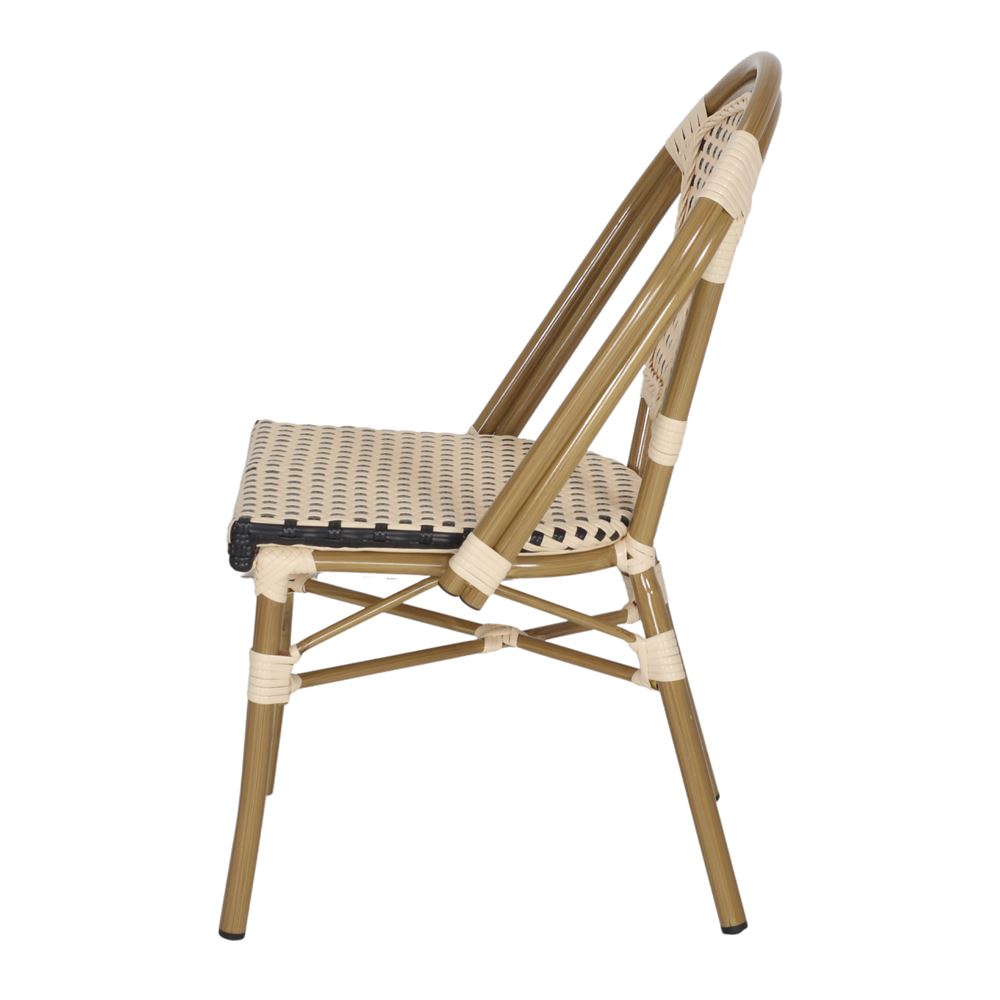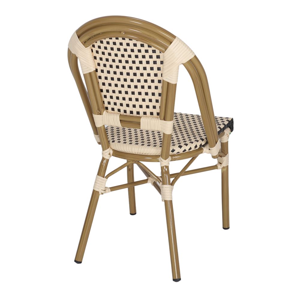 Notre chaise d’extérieur Naima, de style Bistro, représente une fusion parfaite entre fonctionnalité et élégance. Fabriquée en aluminium de haute qualité, ce matériau lui garantit durabilité et résistance aux conditions extérieures les plus exigeantes. La finition imitation rotin donne un aspect naturel et cosy, tandis que la fibre synthétique ajoute une touche d’élégance et de confort.