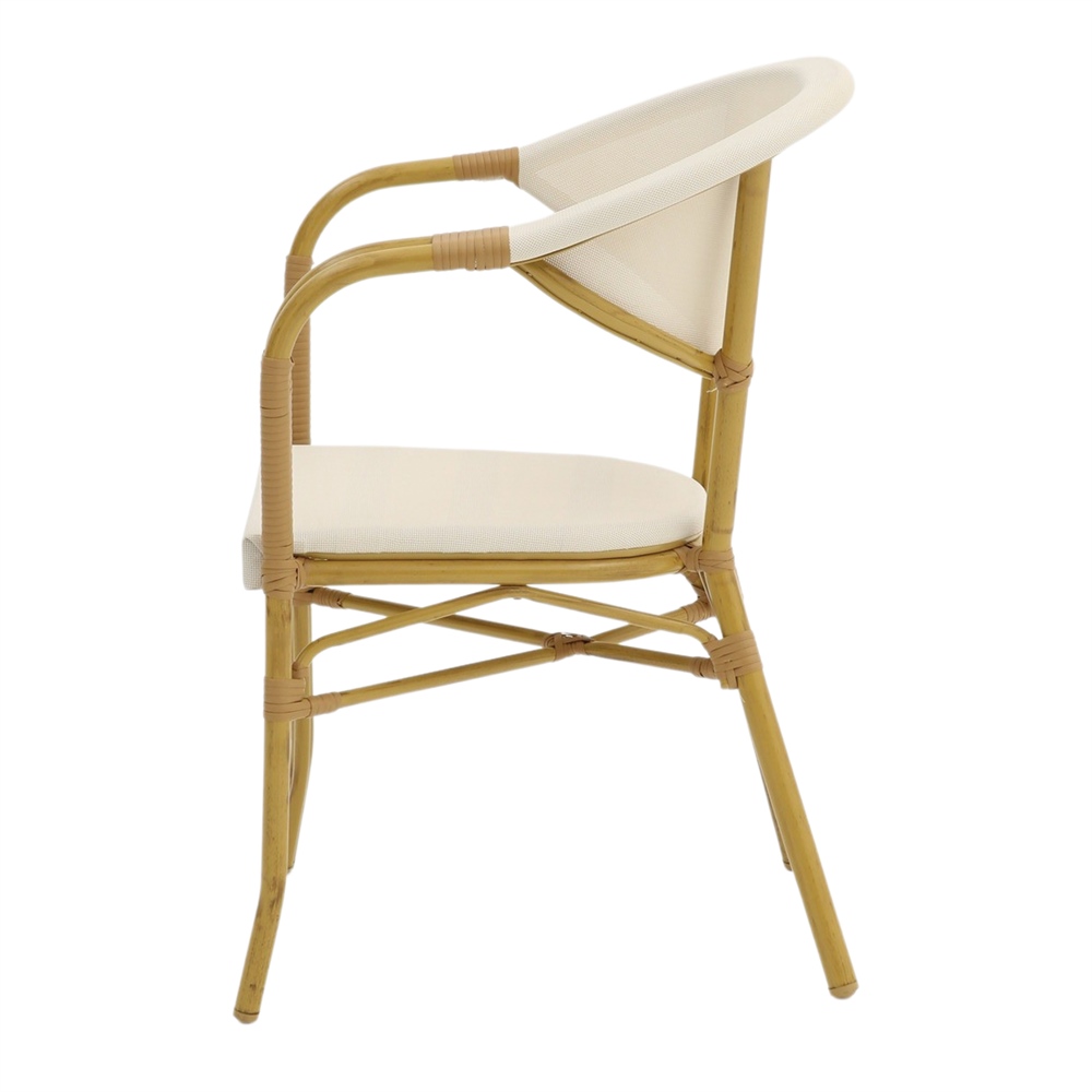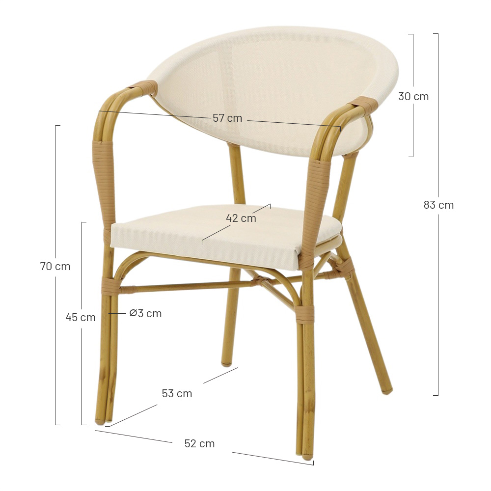 Vous apprécierez ce modèle de chaise d’extérieur style bistrot pour sa robustesse et son confort alliés à une touche de modernité. Ce modèle de chaise d’extérieur donnera une touche parisienne à votre espace avec un design chic et une finition sobre. Avec son style intemporel, vous pourrez l’installer aussi bien autour de votre table de jardin que sur votre terrasse ou même à l’intérieur. Elles s’associeront également parfaitement avec tout type de mobilier de jardin. Son assise, très agréable grâce à la souplesse du textilène, offre un confort que vos convives apprécieront. De plus, nous vous recommandons de les protéger avec une housse de protection.