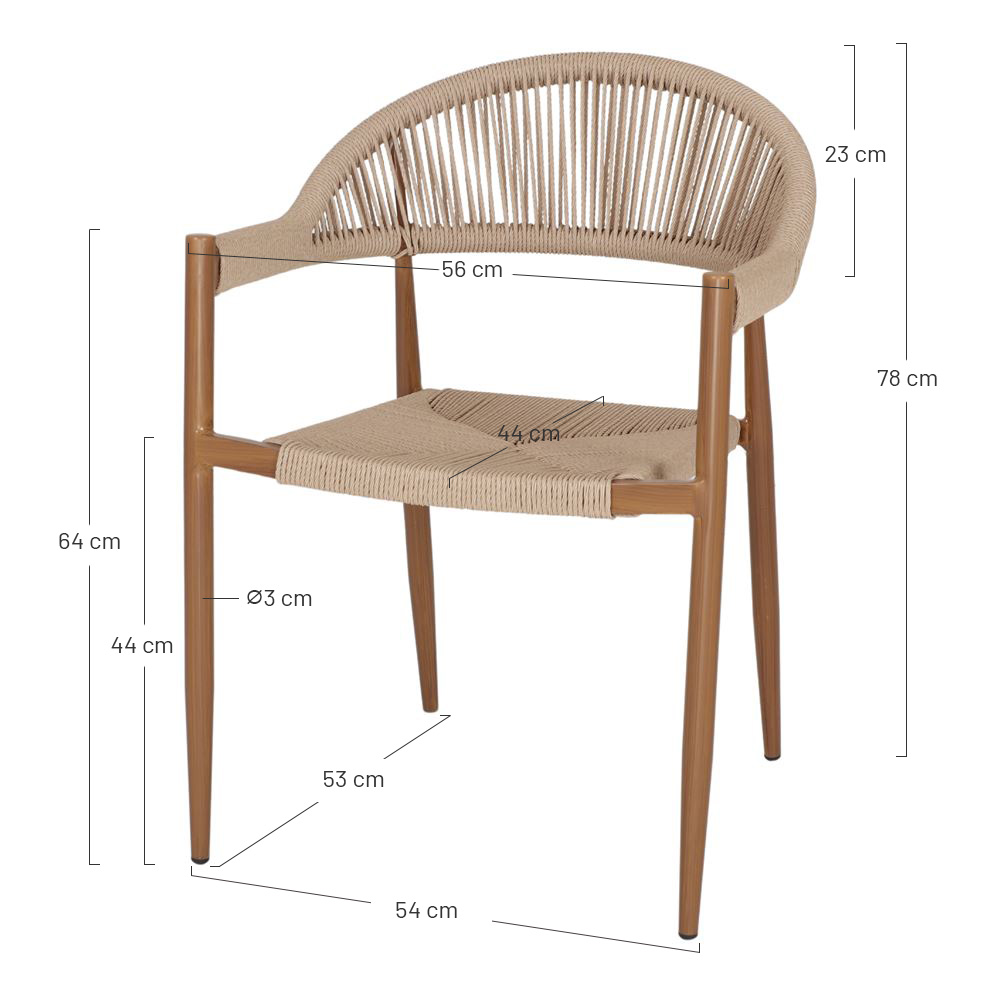 Naturel : 56x59x78 cm | Hauteur d’assise : 44 cm | Accoudoirs : 64 à 70 cm