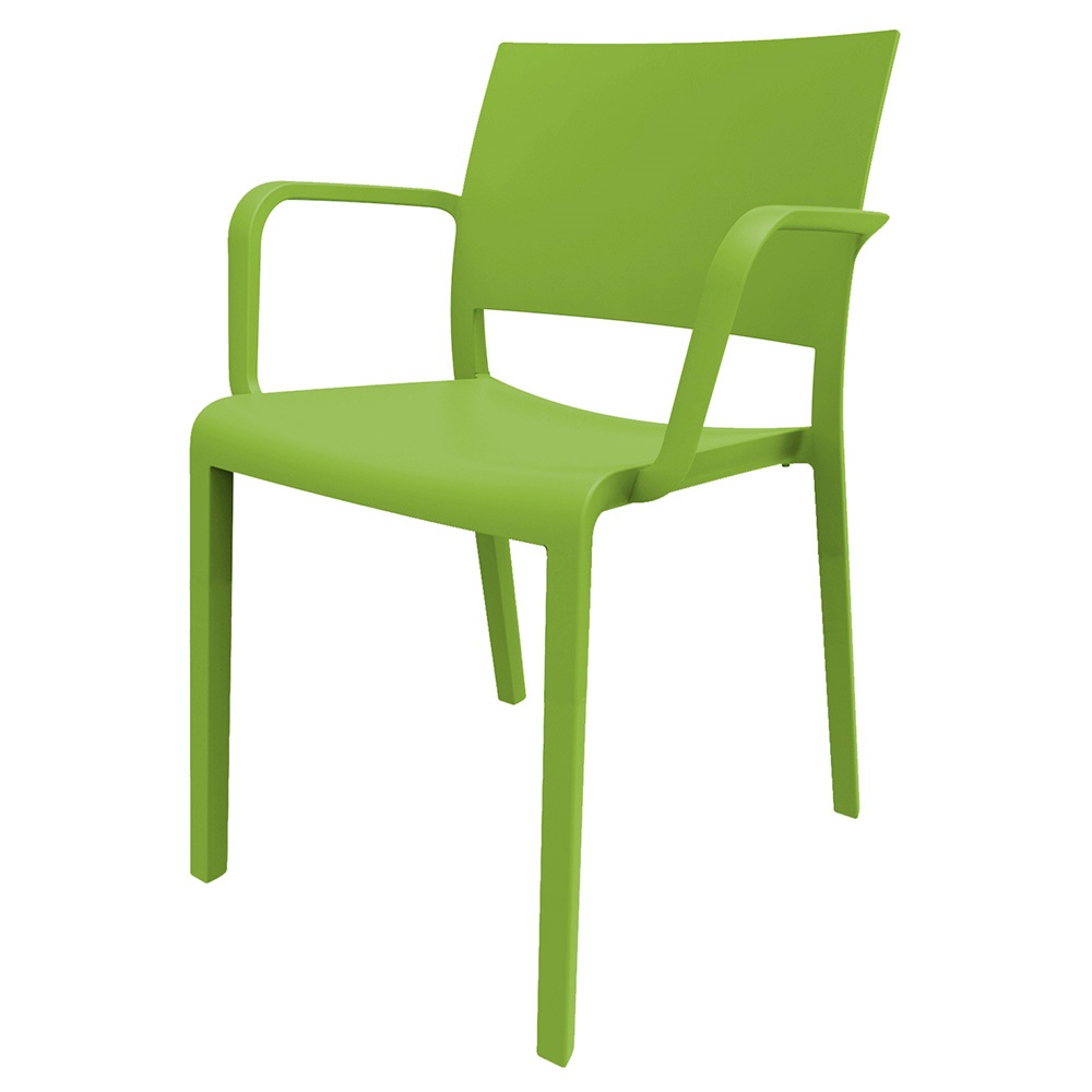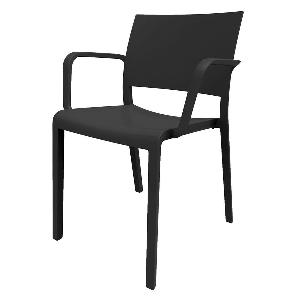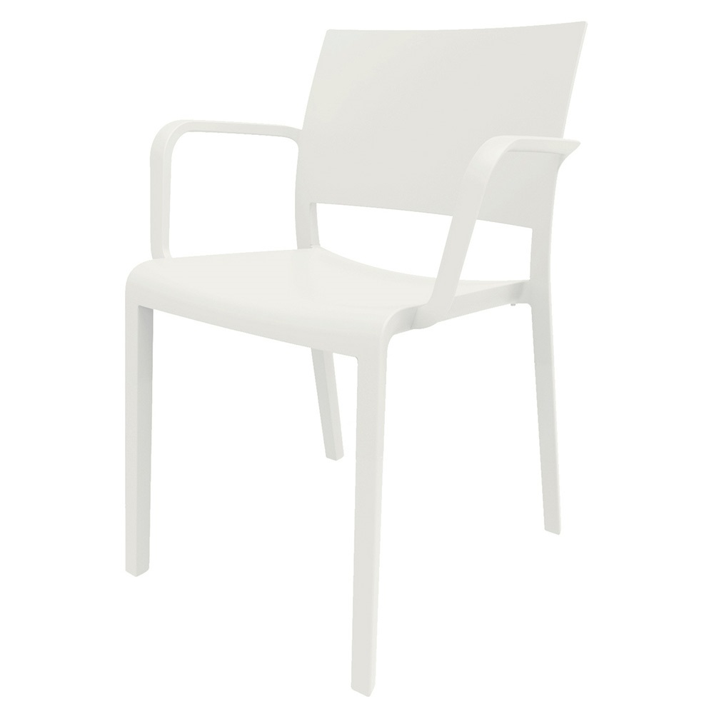 Chaise avec accoudoirs pour usage intérieur ou extérieur, fabriqué en fibre synthétique. Protection anti-UV.