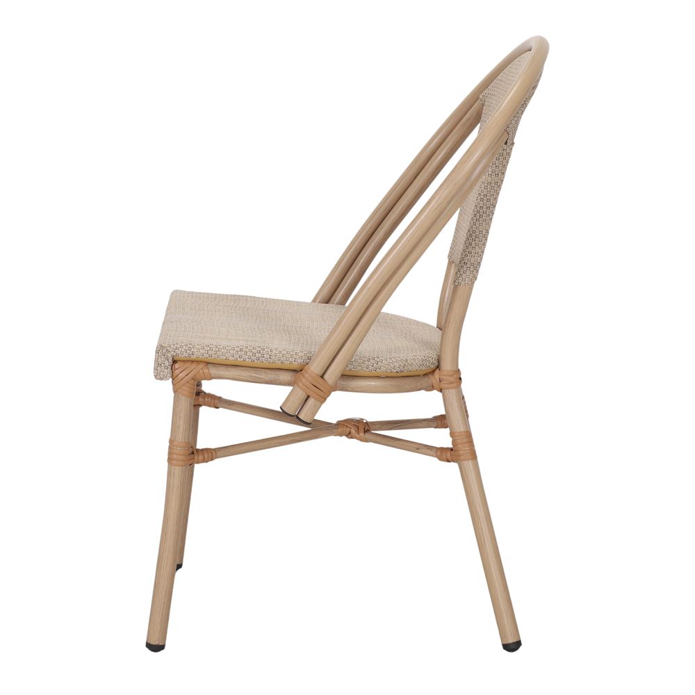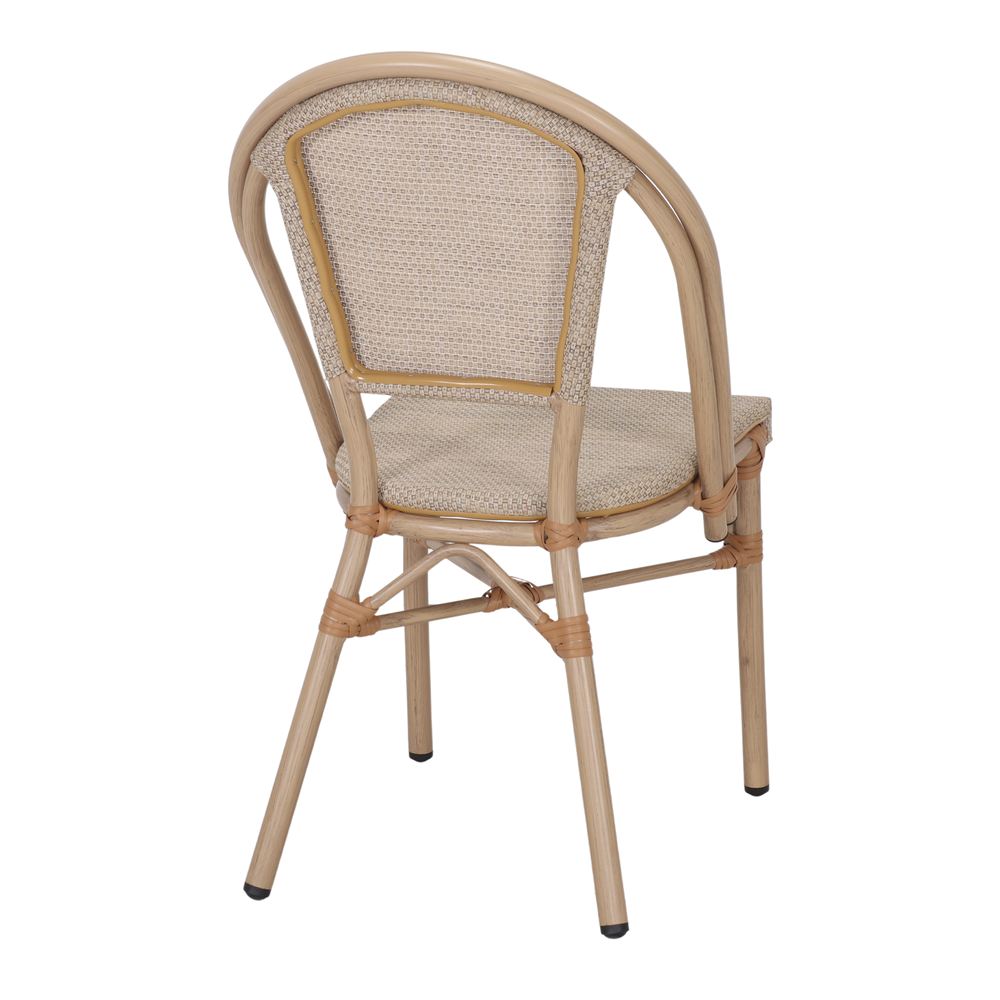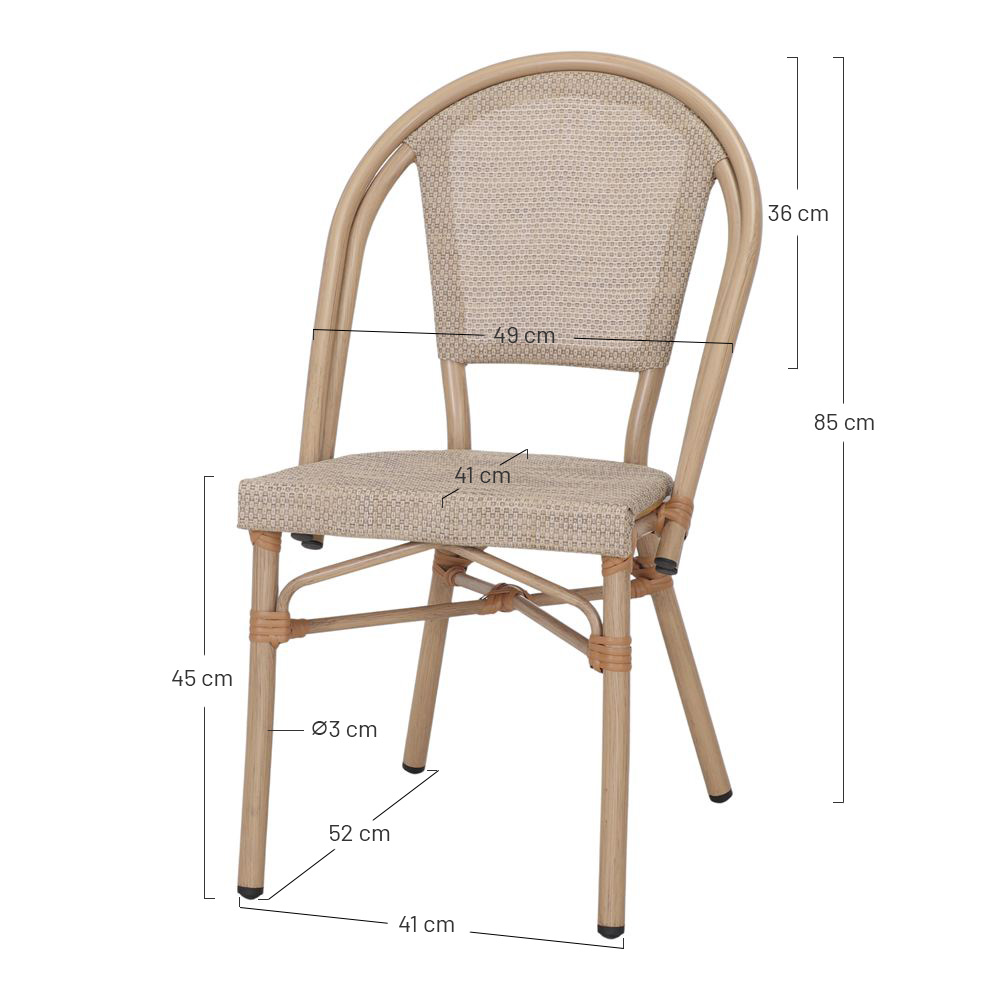 La chaise d’extérieur de style Bistro Vectore allie élégance et fonctionnalité dans un design inspiré du mobilier classique des terrasses parisiennes. Sa structure tubulaire en aluminium avec sa finition effet bambou lui confère un aspect chaleureux et naturel, tout en assurant une parfaite résistance aux intempéries.