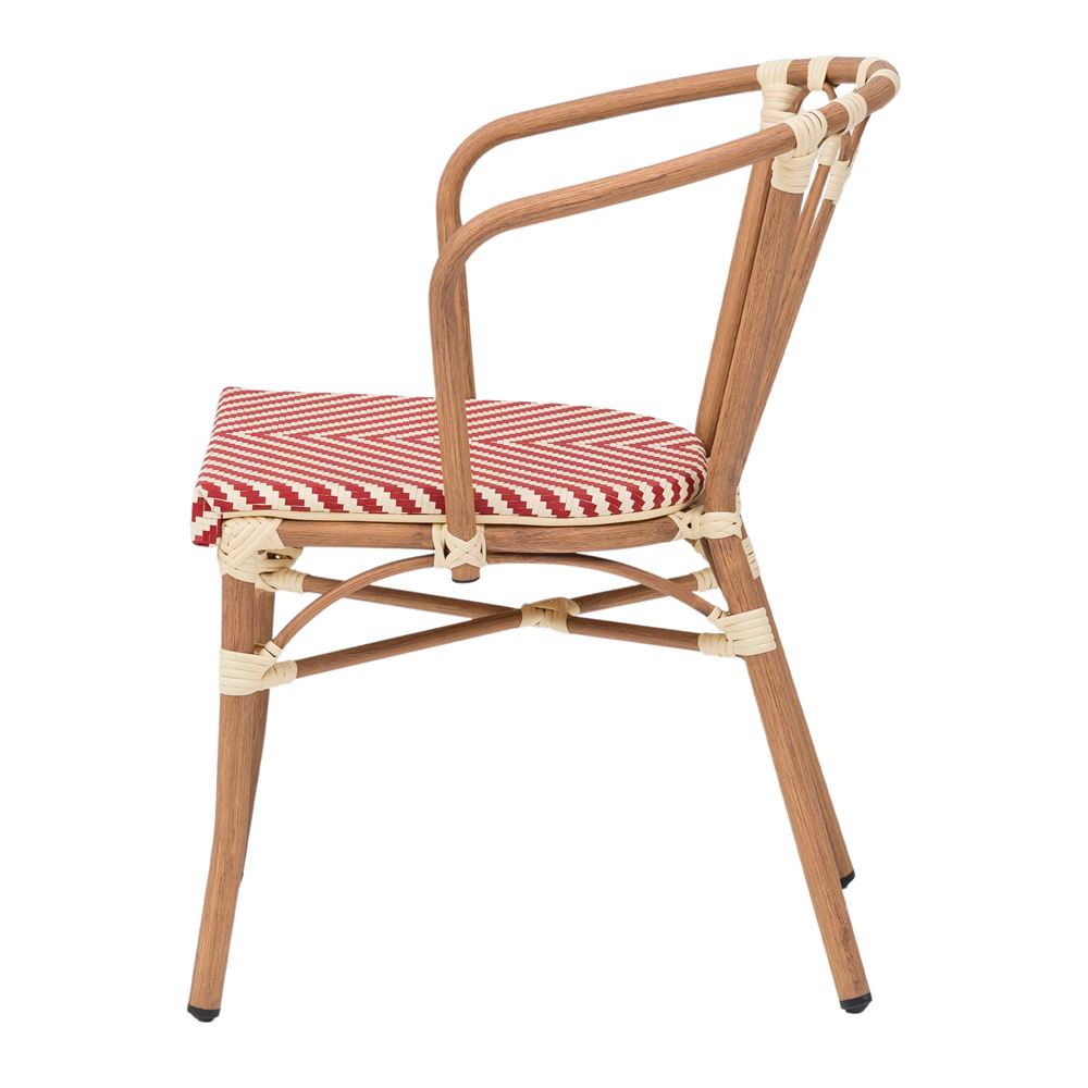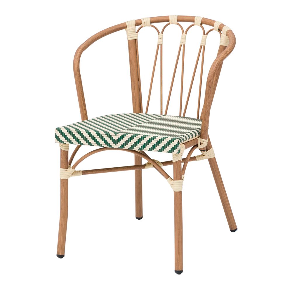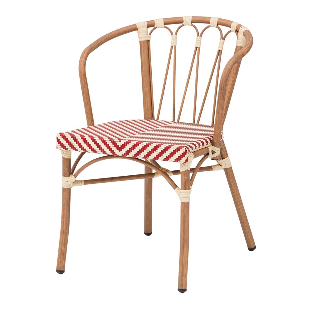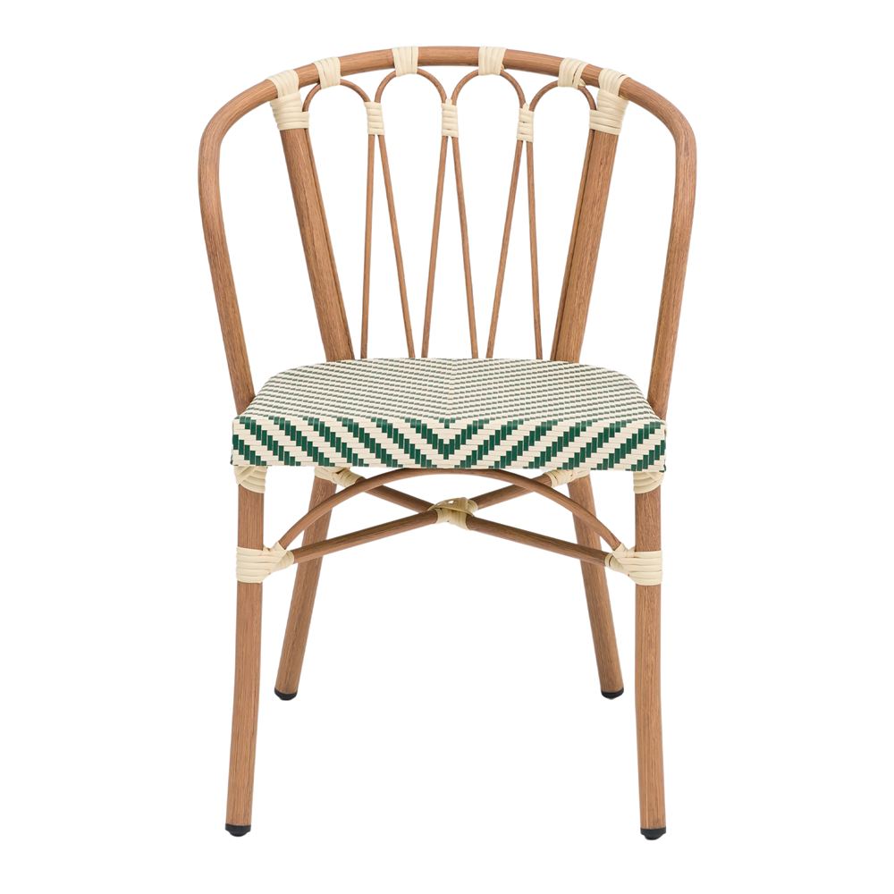 Contrairement aux chaises en bois traditionnelles qui nécessitent un entretien constant et sont sensibles à l’humidité, la Vendome est dotée d’une structure tubulaire robuste en aluminium. Ce qui la distingue vraiment, c’est sa finition impeccable en imitation bois, qui apporte la chaleur visuelle de l’olivier tout en conservant la légèreté et les propriétés anticorrosion du métal. Cette combinaison permet de profiter d’un aspect organique et chaleureux sans les soucis habituels liés au mobilier d’extérieur.
