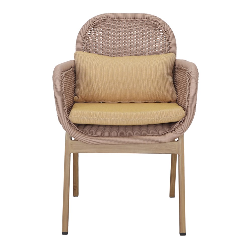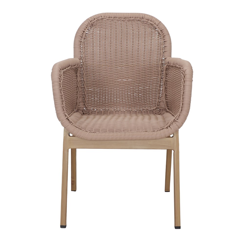 La chaise d’extérieur Zayna est fabriquée en aluminium avec une finition imitation bois, et le tressage de son assise est en fibre de rotin synthétique. De style méditerranéen, cette chaise est parfaite pour les terrasses à forte personnalité et pleine de fraîcheur. Elle peut être utilisé aussi bien dans un restaurant qu’à la maison.