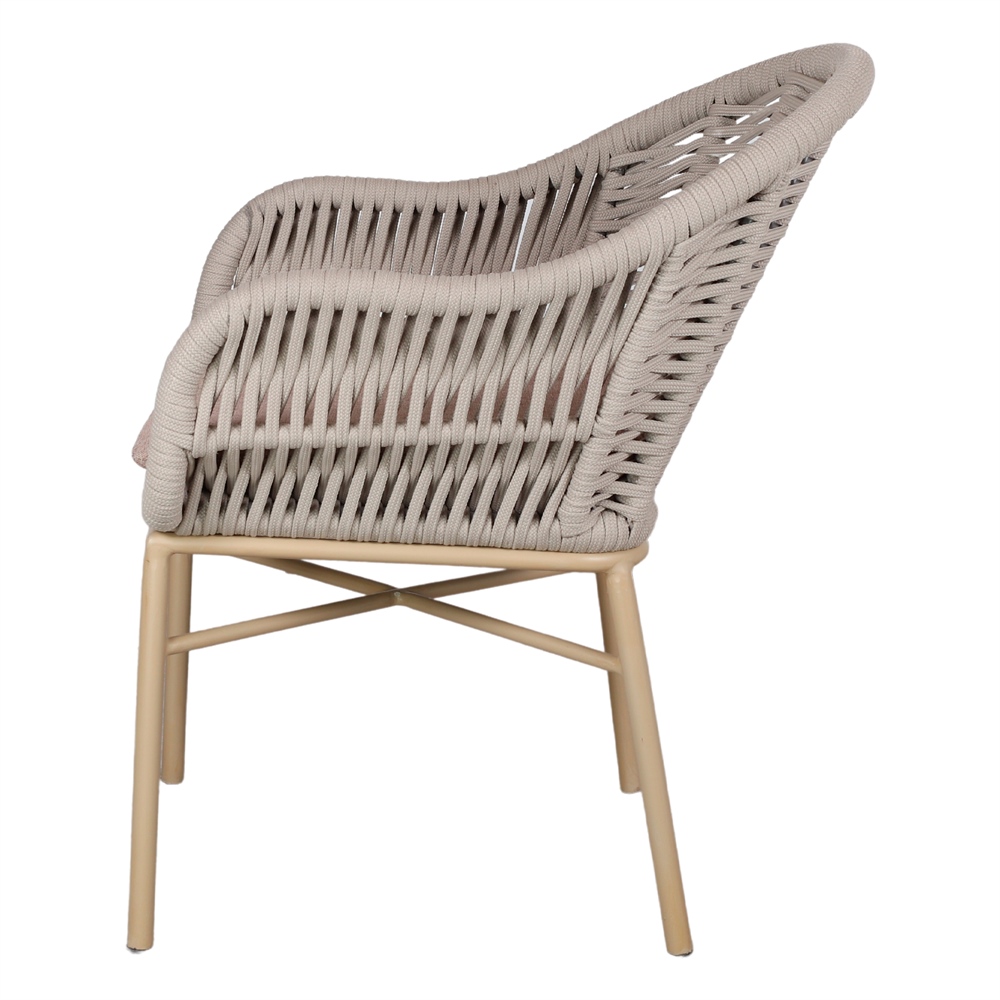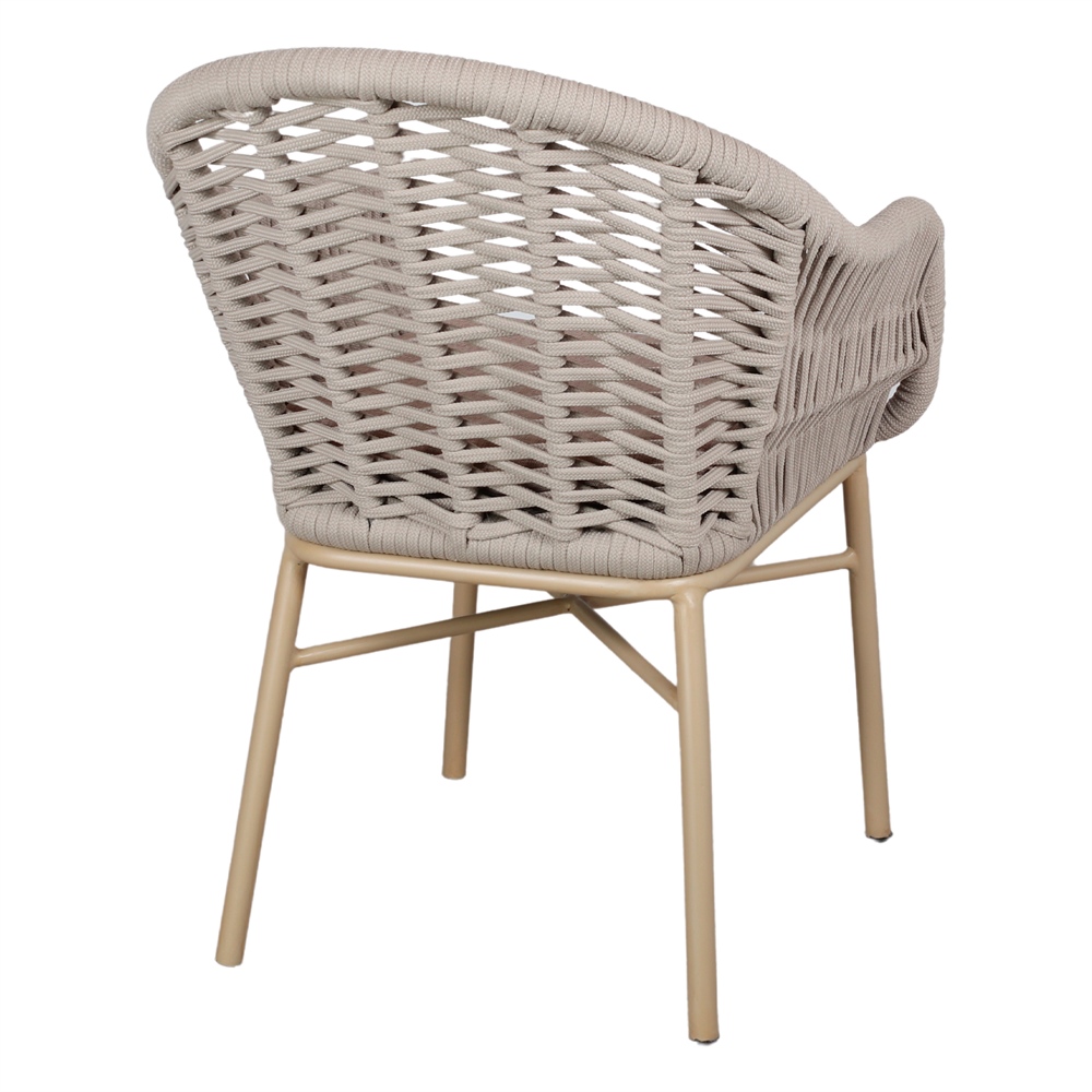 Assise et dossier en corde synthétique tressée.