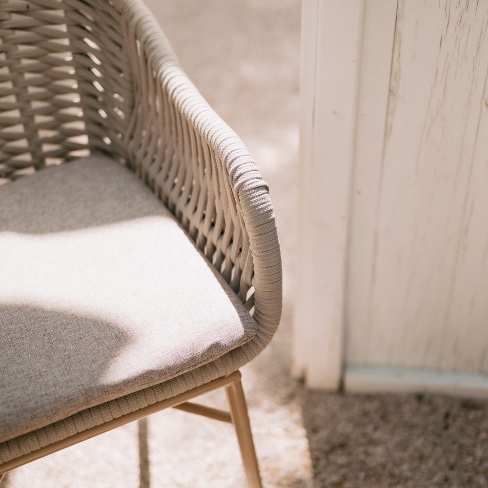 La chaise en métal et corde Omelie est un design de style méditerranéen, idéale pour donner un aspect naturel à votre salle à manger, grâce à sa structure en acier tubulaire et sa corde tressée à la main, des matériaux parfaits pour profiter de votre maison avec style.