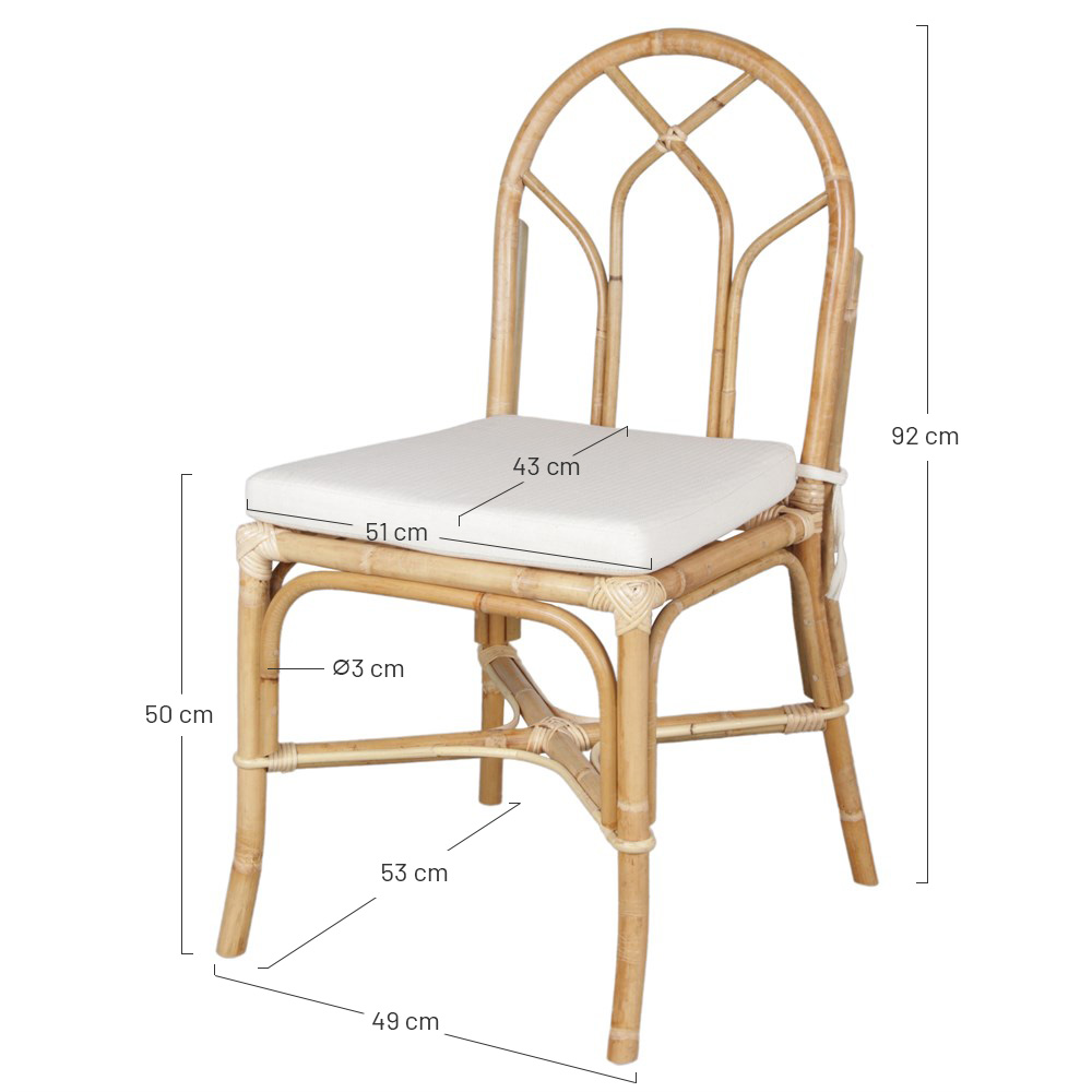 Dimensions : 51x56x92 cm | Hauteur d’assise : 50 cm | Épaisseur du coussin : 4 cm