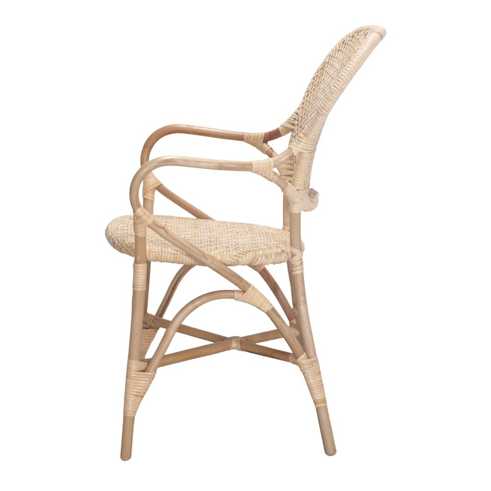 Chaise en rotin Carvi avec accoudoirs, style bistrot.