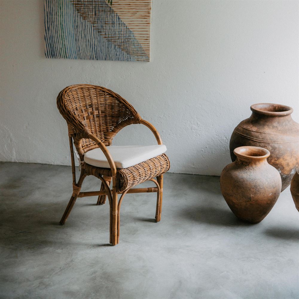 Le rotin est plus que jamais tendance cette saison et c’est aujourd’hui ce qui se fait de mieux en matière de décoration d’intérieur. Notre chaise en rotin Petras se distingue par son design exotique, parfaite pour la maison, c’est une chaise élégante, également accompagnée d’un coussin de couleur claire, ce qui la rend encore plus confortable.