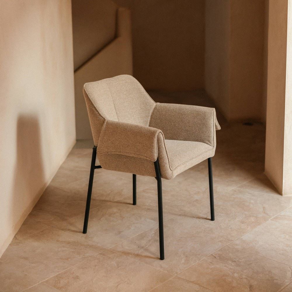 Originalité et confort sont au cœur du design de la chaise tapissée Astrid. Son revêtement textile lui apportera un toucher doux et une assise confortable et donnera un aspect cosy et chaleureux à votre intérieur. Rembourrée de mousse, cette chaise tapissée est ultra confortable, ce qui en fait une chaise de salle à manger parfaite. Pour faire ressortir ce type de chaise tapissée, nous la combinerons avec une grande table de salle à manger, par exemple.