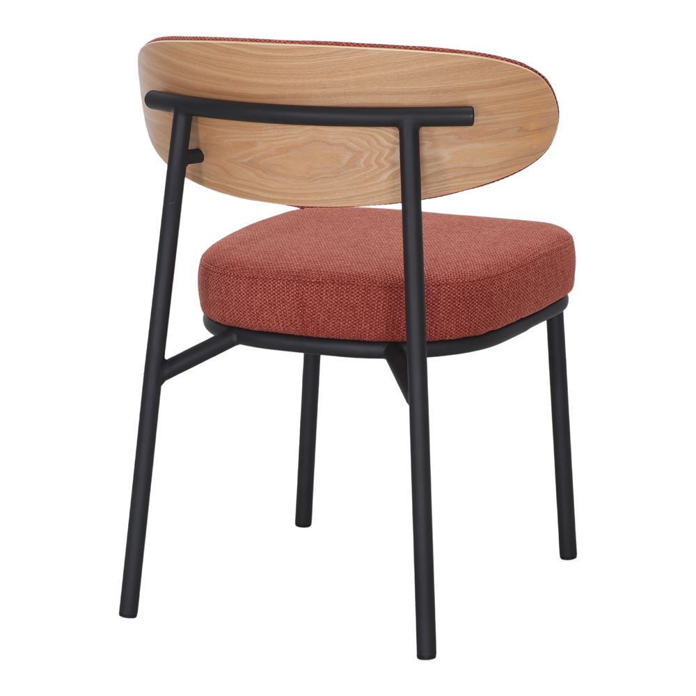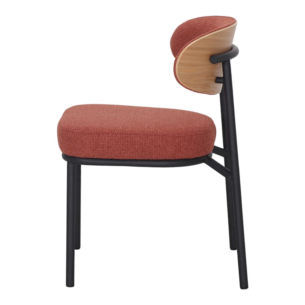 L’assise recouverte de textile offre un confort et une finition chaleureuse, s’adaptant aux différents styles de décoration. De son côté, le dossier en contreplaqué à la finition naturelle ajoute une touche organique et harmonieuse au design. Ce dossier, qui comprend également un revêtement en tissu, augmente le confort de l’assise, garantissant un soutien ergonomique pendant de longues heures d’utilisation.