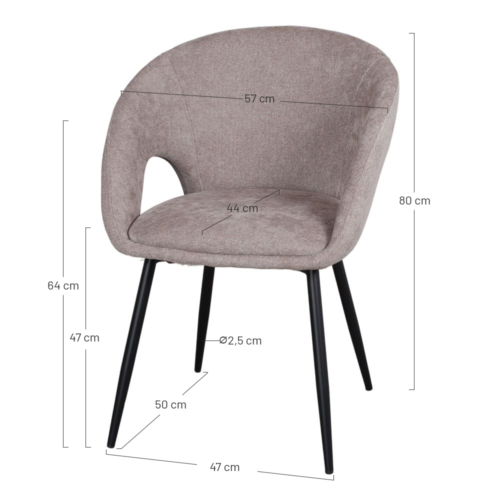 Dimensions : 57x57x80 cm | Hauteur d’assise : 47 cm | Accoudoirs : 64-76 cm