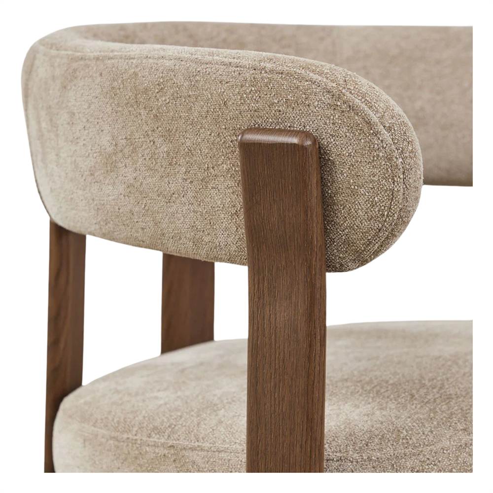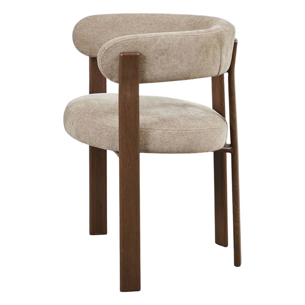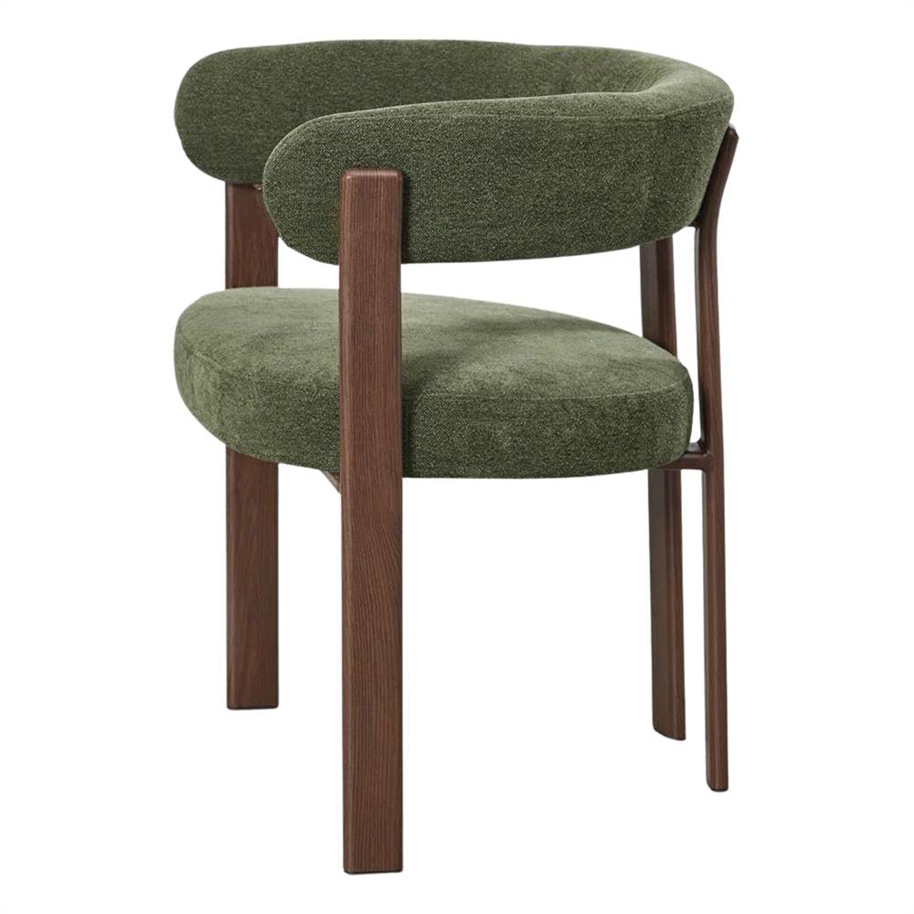 L’assise et le dossier tapissés offrent un confort exceptionnel. Le tissu, doux et agréable au toucher, enveloppe le corps et favorise une posture confortable, parfait pour profiter de longs repas. Son design ergonomique s’adapte facilement à différents contextes décoratifs, des environnements minimalistes aux intérieurs de style nordique ou urbain.
