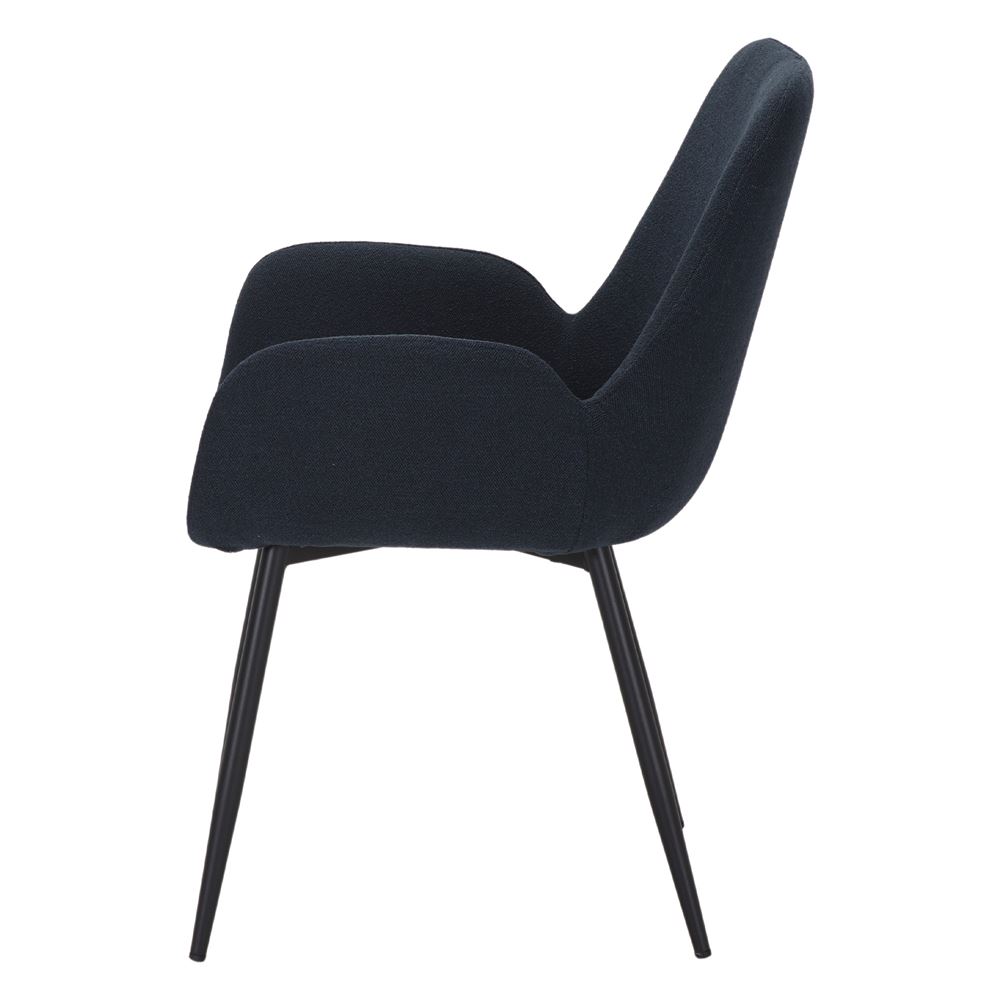 La finition en peinture noire de la structure renforce non seulement son caractère moderne, mais fait également de la chaise tapissée Maxwell un meuble facile à entretenir. Ce détail rend la chaise particulièrement polyvalente, se fondant sans effort dans une variété de styles décoratifs, de l’industriel au scandinave.