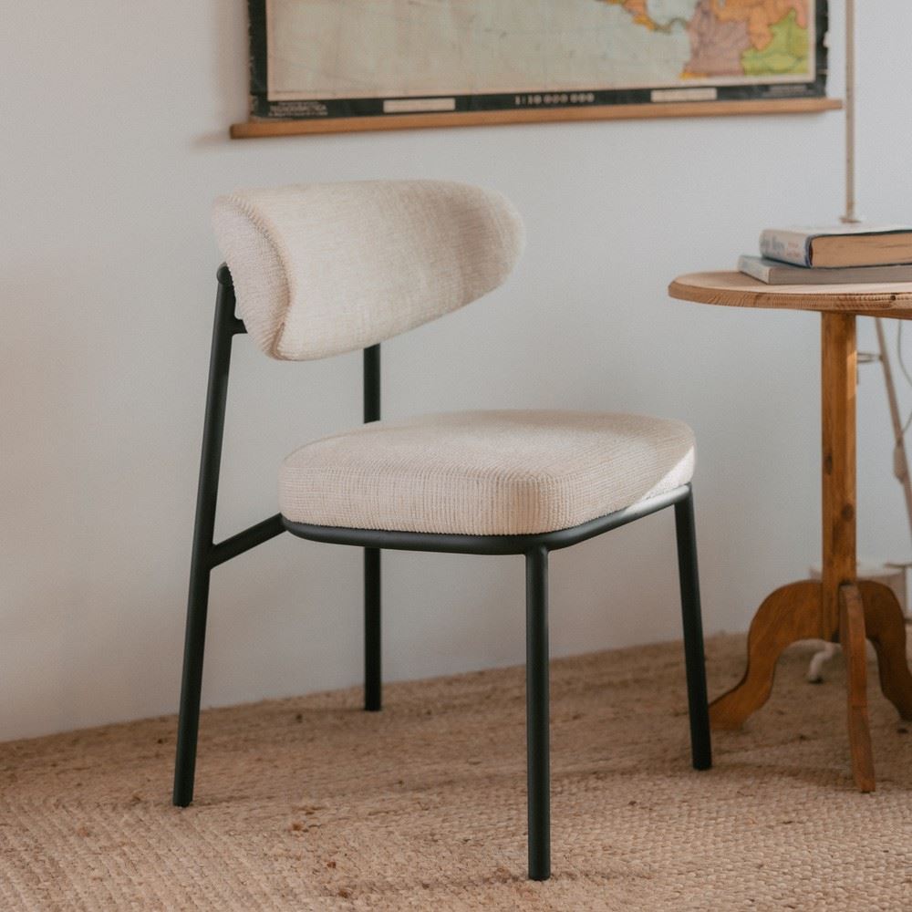 La chaise tapissée Redding est un meuble de style contemporain. Sa conception se distingue par sa structure tubulaire en acier, qui lui confère robustesse et stabilité. Cette structure en métal dispose d’une finition en peinture noire mat, ce qui lui confère un look moderne et sophistiqué, idéal pour s’intégrer aux espaces actuels.