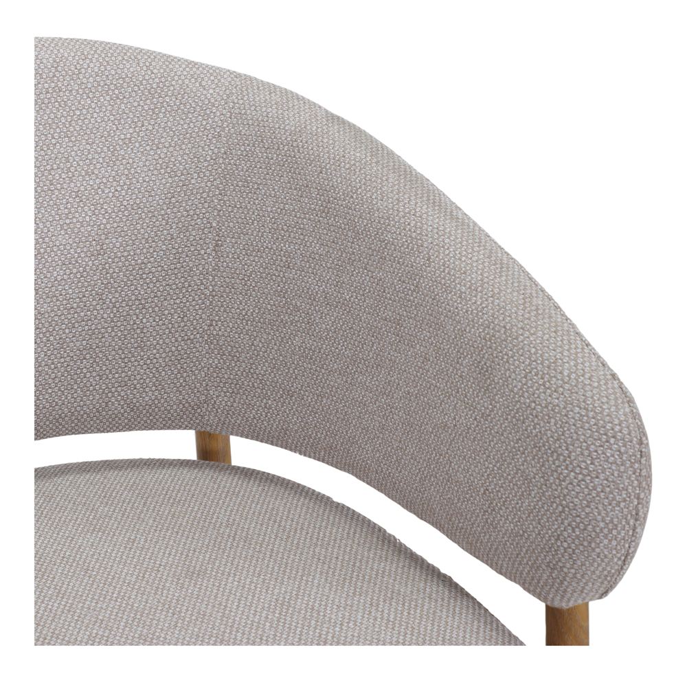 L’assise et le dossier tapissés en textile offrent une expérience confortable et accueillante à l’utilisateur. Le tissu, agréable au toucher, apporte de la chaleur et renforce le caractère cosy de la pièce, tandis que la forme ergonomique du dossier assure un bon soutien.