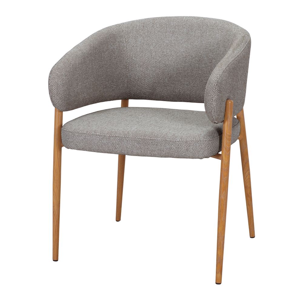 Sa structure en acier garantit une base solide et durable, idéale pour un usage intensif. Les pieds aiguilles, fins et profilés, apportent une légèreté visuelle et un air de sophistication qui rehausse l’ensemble. La finition imitation bois adoucit le design, en apportant une touche organique qui s’harmonise avec les espaces qui combinent l’industriel et le naturel.