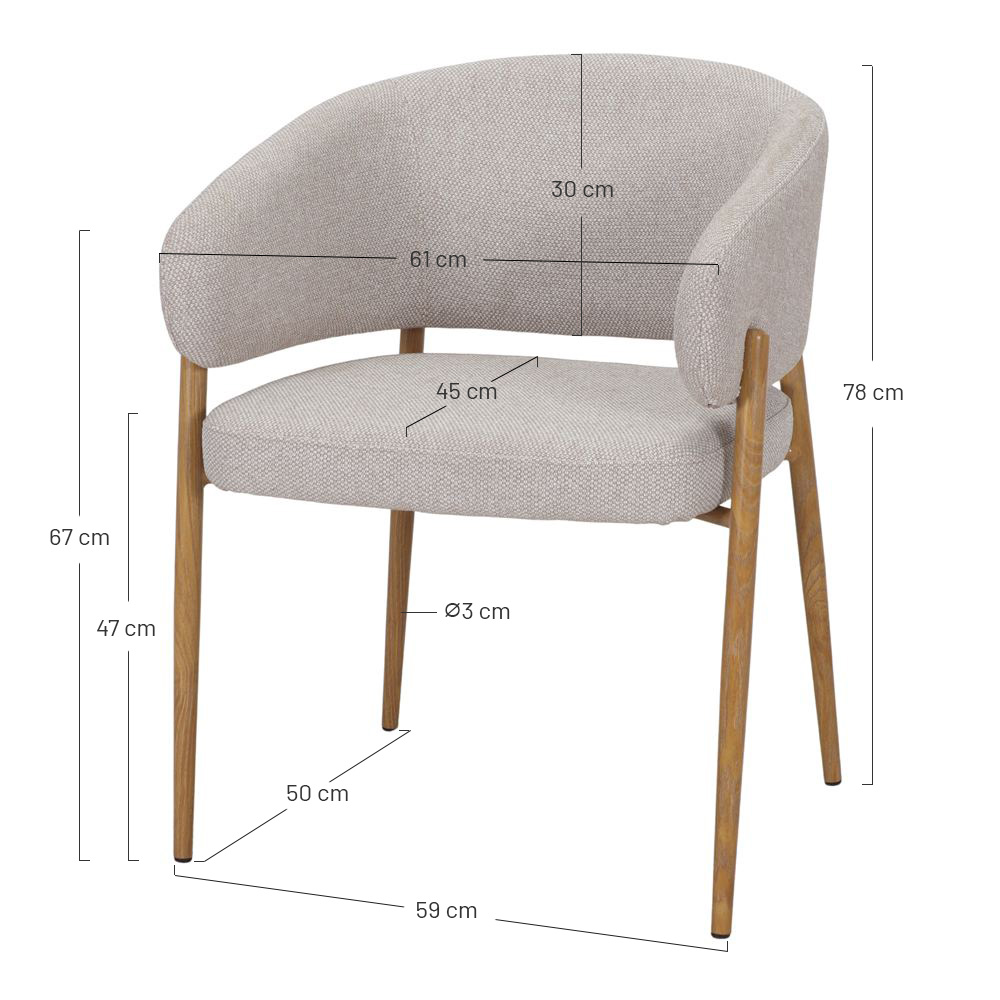 Dimensions : 61x56x78 cm | Hauteur de l’assise : 47 cm | Accoudoirs : 67-75 cm