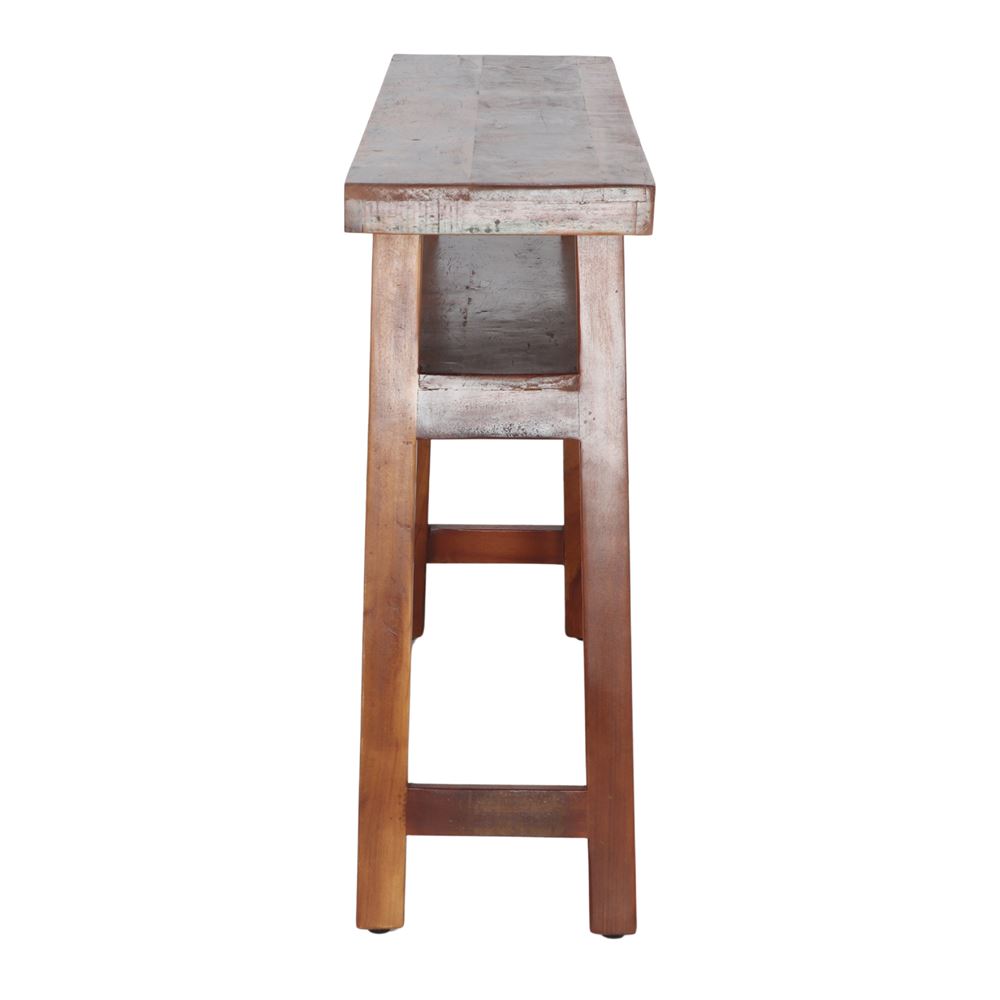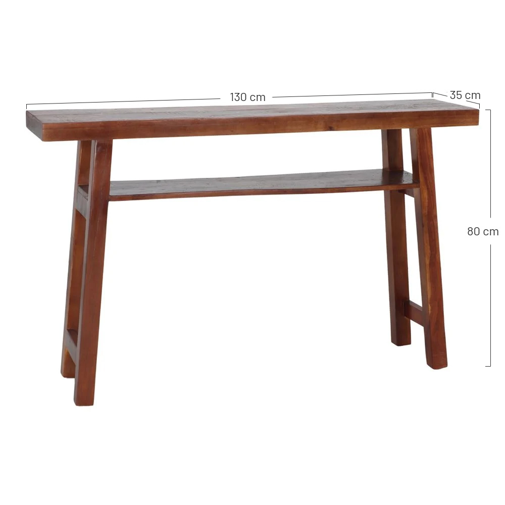 Console rectangulaire fabriquée en bois de pin recyclé massif, avec traverse inférieure.Ce meuble est fabriqué de façon artisanale avec du bois ancien et du bois recyclé, il peut par conséquent présenter les marques et les irrégularités d’usure causées par le passage du temps. Le bois a été traité contre les vers à bois, mais vous pouvez toutefois trouver d’anciennes marques de vers sur ce type de bois.
