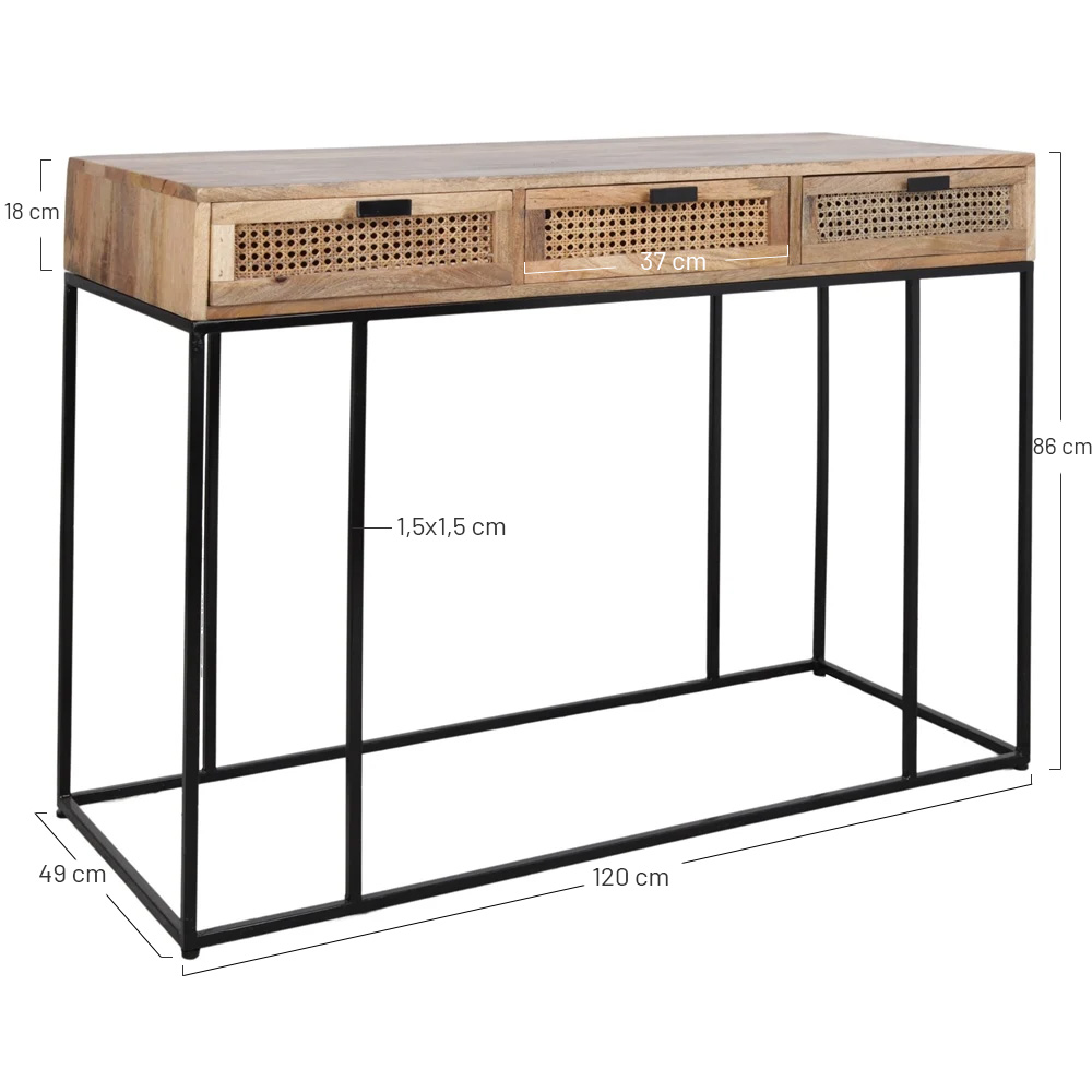 Console en métal et en bois Moscobal, de style industriel avec 3 tiroirs frontaux.