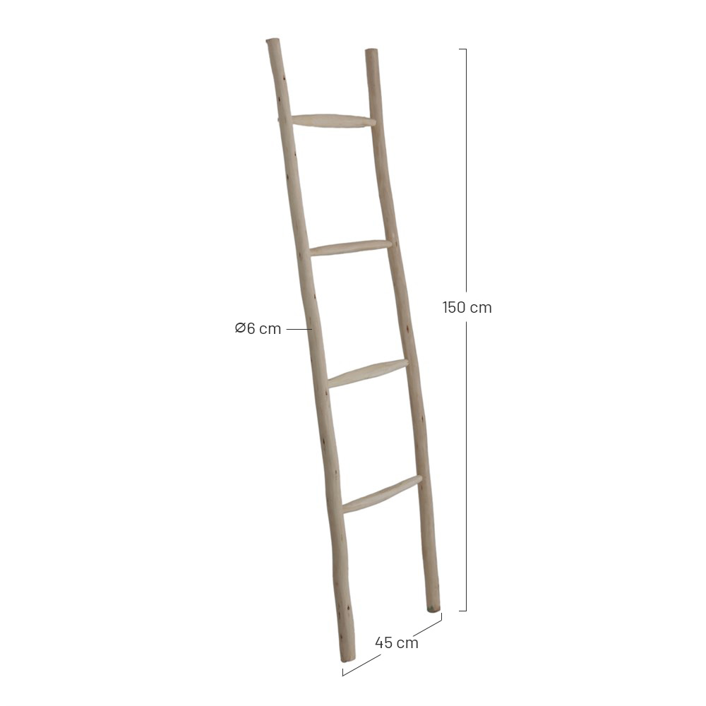 L’échelle décorative Samara est un meuble réalisée à la main en bois de laurier massif. Elle se compose de 4 échelons pour y suspendre des objets tels que du linge de salle de bain ou des vêtements. Si vous êtes décorateur, gérant de magasin, de restaurant ou d’un hôtel, vous pouvez bénéficier de nos remises spéciales pour professionnels de MisterWils. Plus d’informations ici. Plus d’informations ici.
