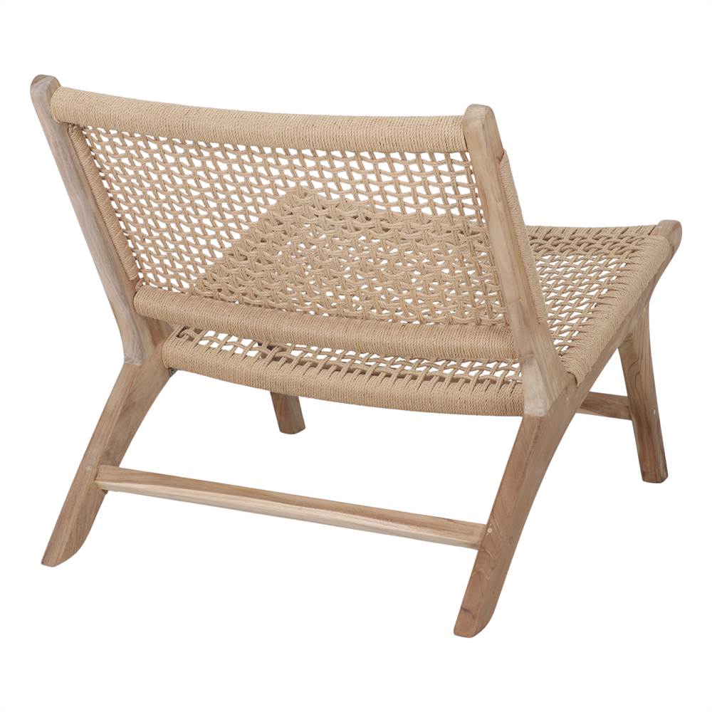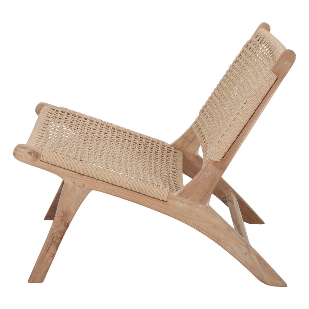 Le design bas et légèrement incliné du fauteuil Thorne invite à la relaxation, ce qui en fait un choix parfait pour les environnements méditerranéens, scandinaves ou de style rustique contemporain.