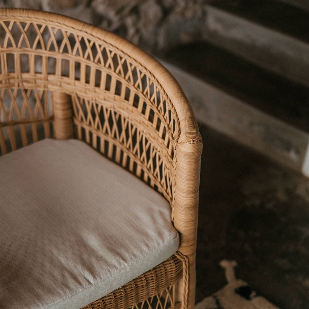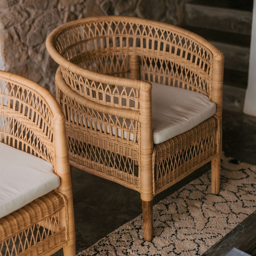 Fauteuil en rotin naturel Malawi avec accoudoirs, de style méditerranéen.