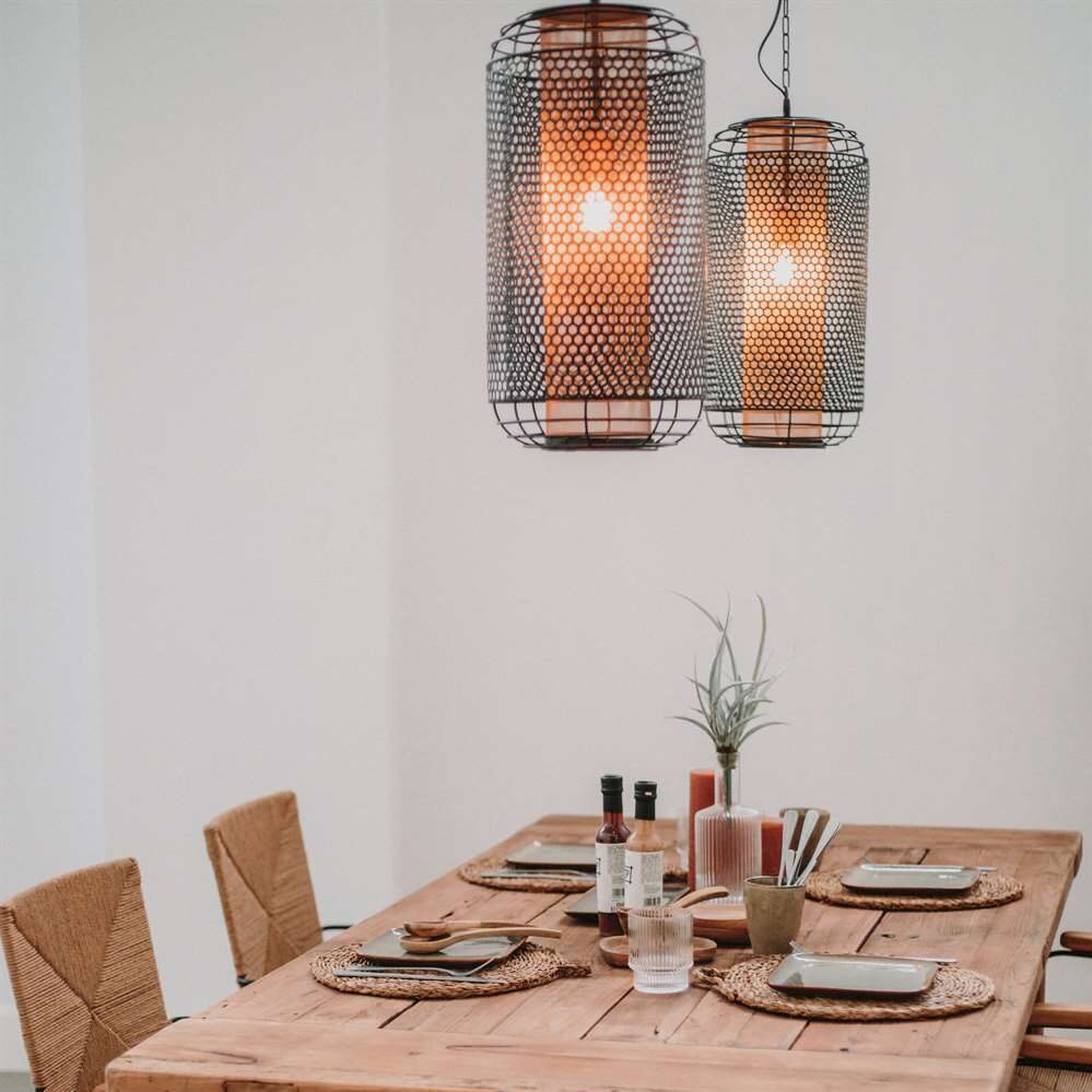 Envie d’une pièce à vivre originale et poétique ? Cette suspension est faite pour vous ! Grâce à sa structure en lamelles d’acier, elle rappelle les cages d’oiseaux et diffuse une lumière dans toute la pièce, tout en laissant des ombres et des formes sur vos murs. Un vrai moment de douceur et de poésie. Son aspect moderne et élégant font de cette suspension un objet passe partout qui pourra tout aussi bien être installé dans une chambre que dans un salon.