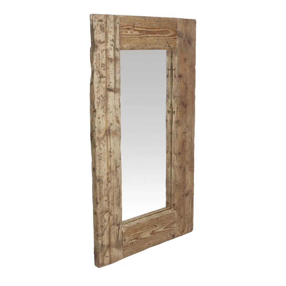 Miroir rectangulaire avec un cadre en bois ancien recyclé.