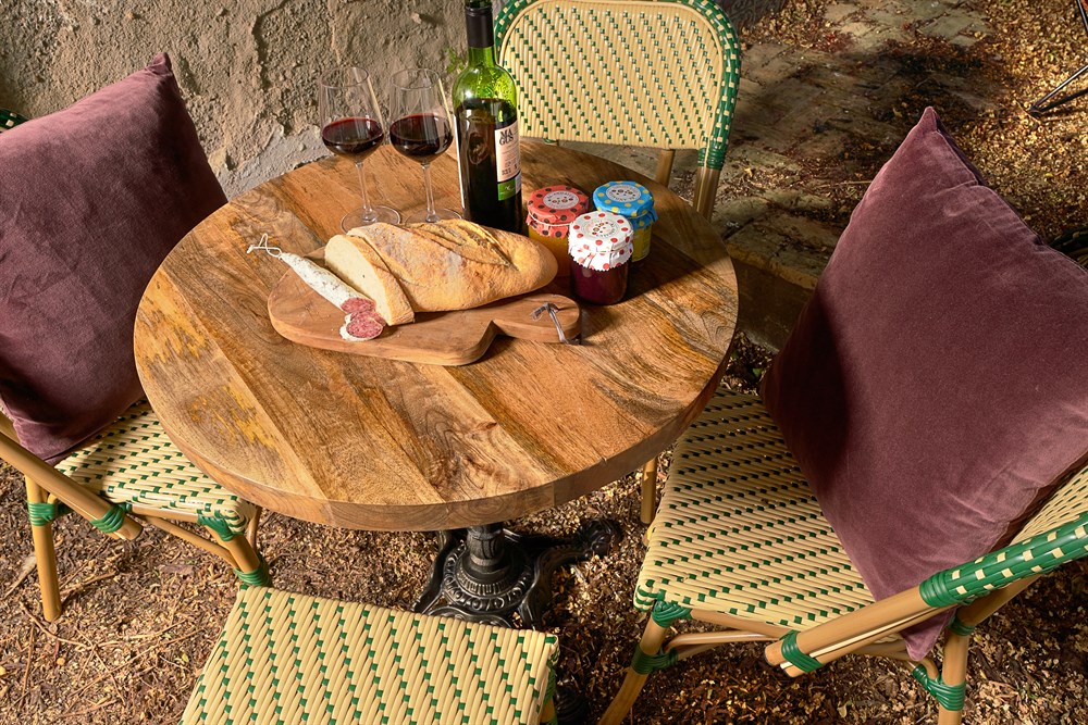 Le plateau en bois DELHI est en bois de manguier naturel. Ce plateau se distingue par sa solidité, sa durabilité et le grain de son bois. Parfait pour les intérieurs de style exotique et tropical, il est idéal pour les tables de salle à manger et peut être utilisé aussi bien dans un restaurant qu’à la maison. Pour associer ce plateau, nous avons les structures et les pieds de table qu’il vous faut.