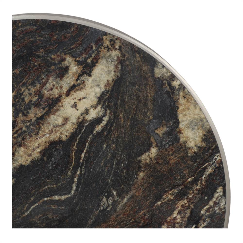 Plateau Lorna Deco pour table fabriqué en contreplaqué stratifié avec finition blue storm, et encastré dans un cadre en aluminium avec finition en cuivre anodisé mat.